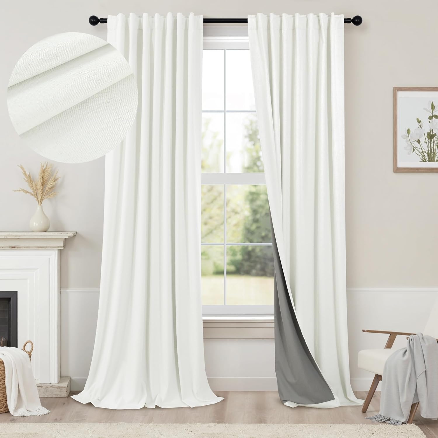 - 100% Blackout Curtains: A total blackout thermal coating layer is attached to the back of our faux linen curtains, blocking 100% of sun light and UV rays. Providing a completely dark environment for sleep and privacy. Good choice for bedroom, nursery room, kids room, living room, dining room, office, sliding glass door