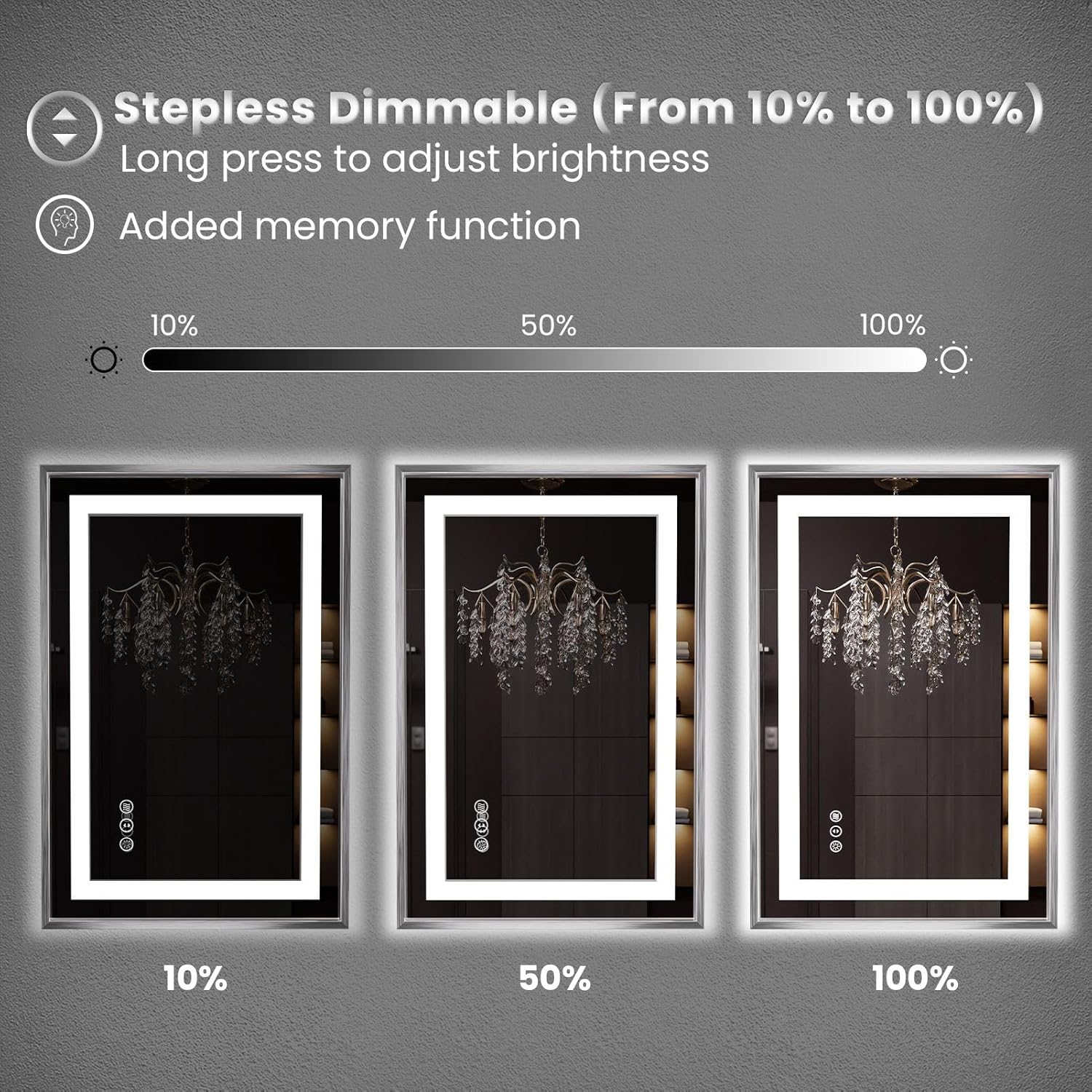 Amorho 40" X36" LED Bathroom Mirror, Brushed Nickel Framed Mirror with Front Light and Backlit, Stepless Dimmable, Anti-Fog, Shatter-Proof, Memory, 3 Colors