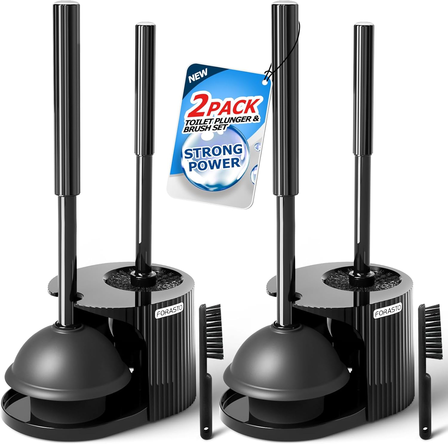 - Toilet Brush and Plunger Set: This product has a toilet brush with thick bristles, a high-suction toilet plunger with an extended handle,a stable bracket and a groove gap brush