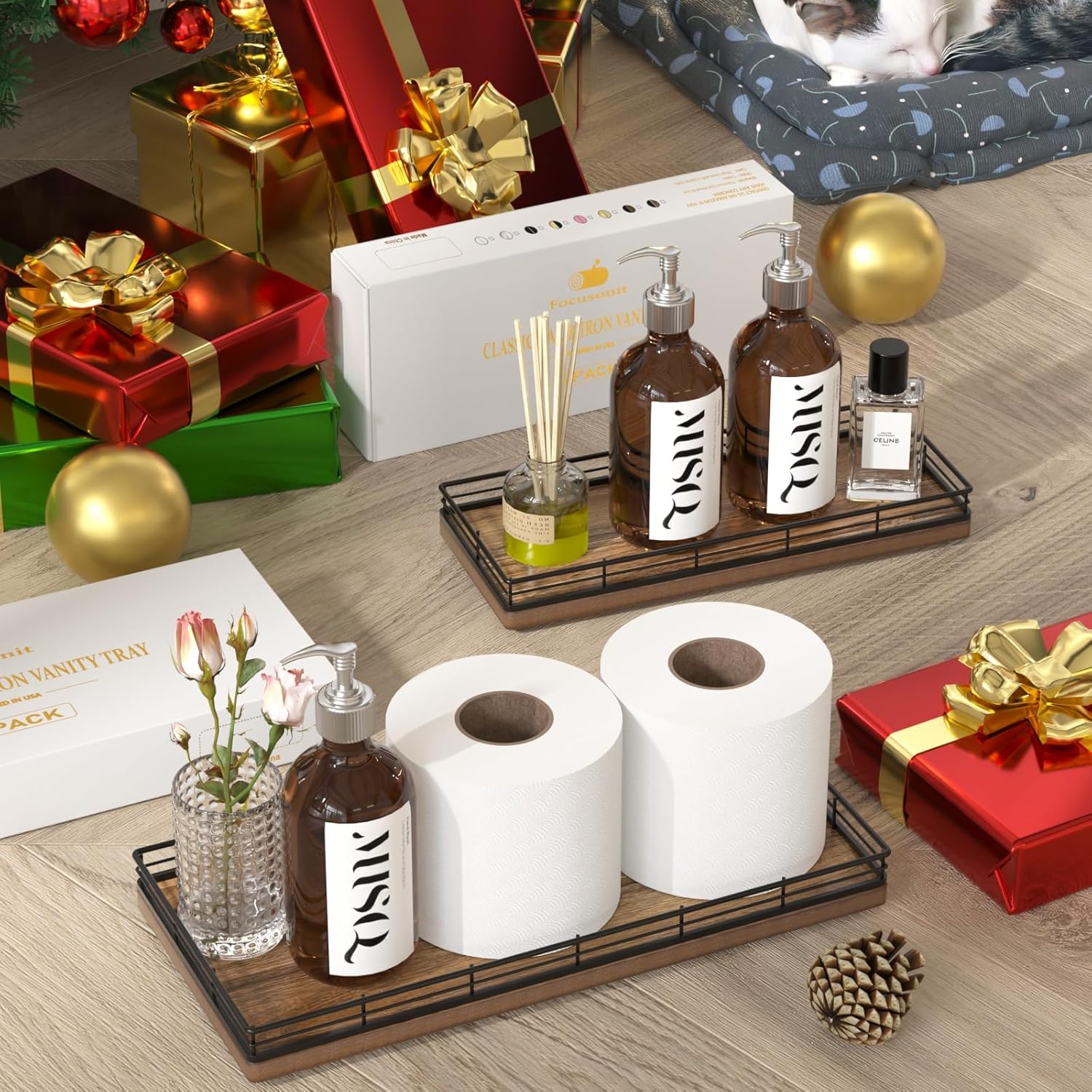 - Considerate Design: This bathroom trays for counter is ready to use without any installation required; Upgraded embedded welding design enhances stability and aesthetics; Raised edge prevent items from slipping; 4 non-slip pads on the bottom protect surfaces from scratches; Simplify your cleaning routine with just a quick wipe-down using a damp cloth, saving you time and hassle