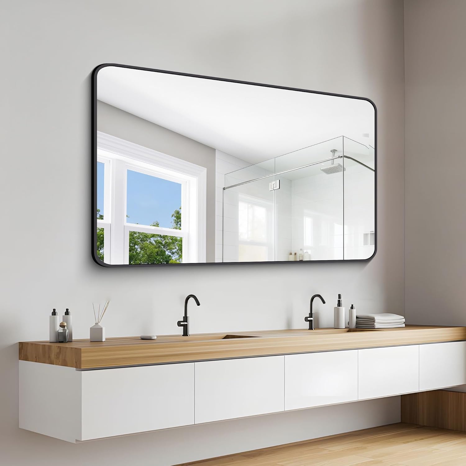 60" x 36"Bathroom Mirror, Matte Black Wall Mirror with Metal Frame, Decorative Rectangular Vanity Mirror for Bedroom Bathroom Living Room Entryway (Horizontal/Vertical)