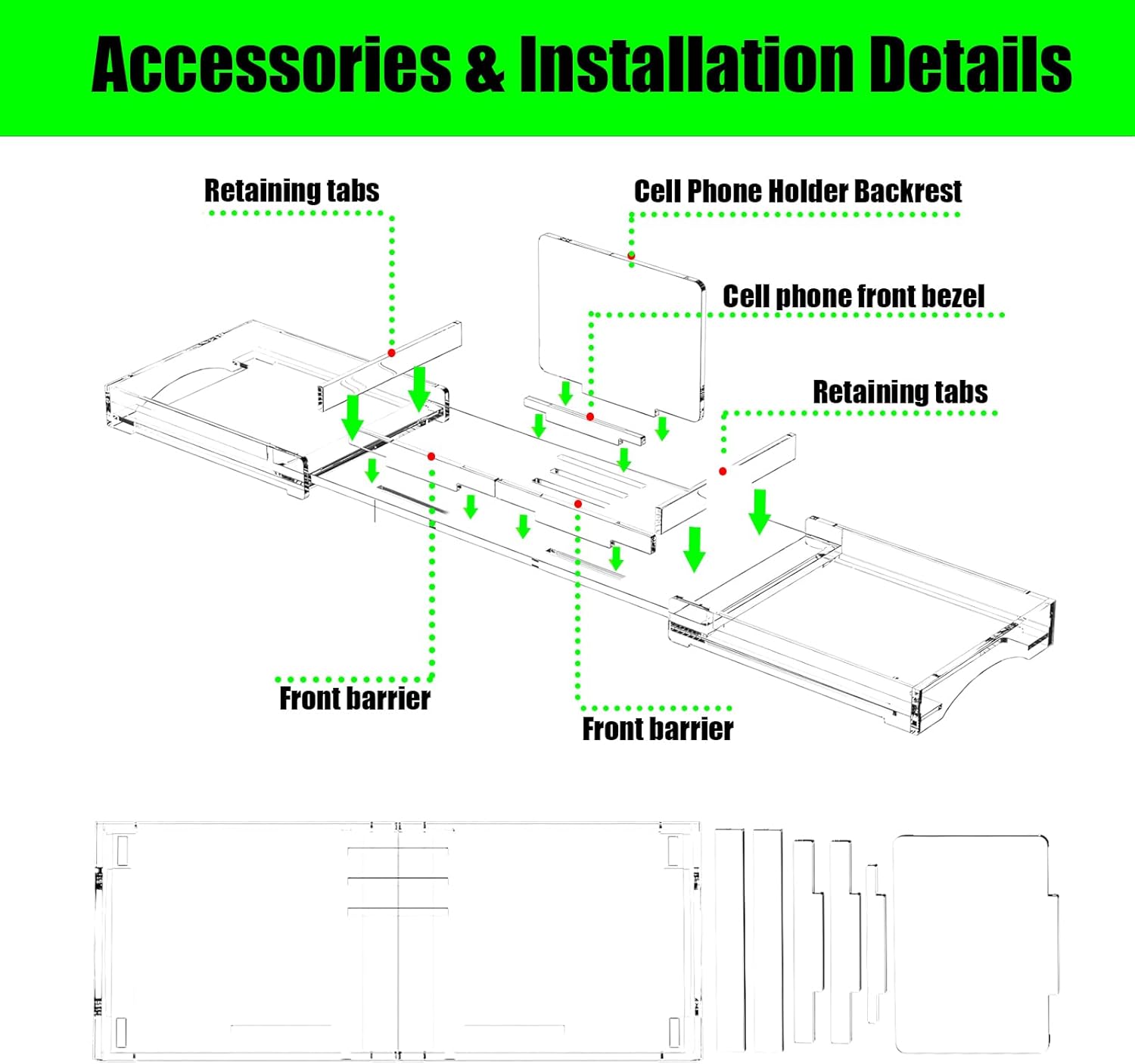 - Perfect design: This bath tub tray table acrylic adopts modern fashion design, luxurious and high-end, all four sides are surrounded by design to prevent items from falling into the water, convenient storage before and after bathing, you can put your items storage tray, because your health is important, so should you Take a break and relax at home after a long day with the help of our tub tray for bathtub clear