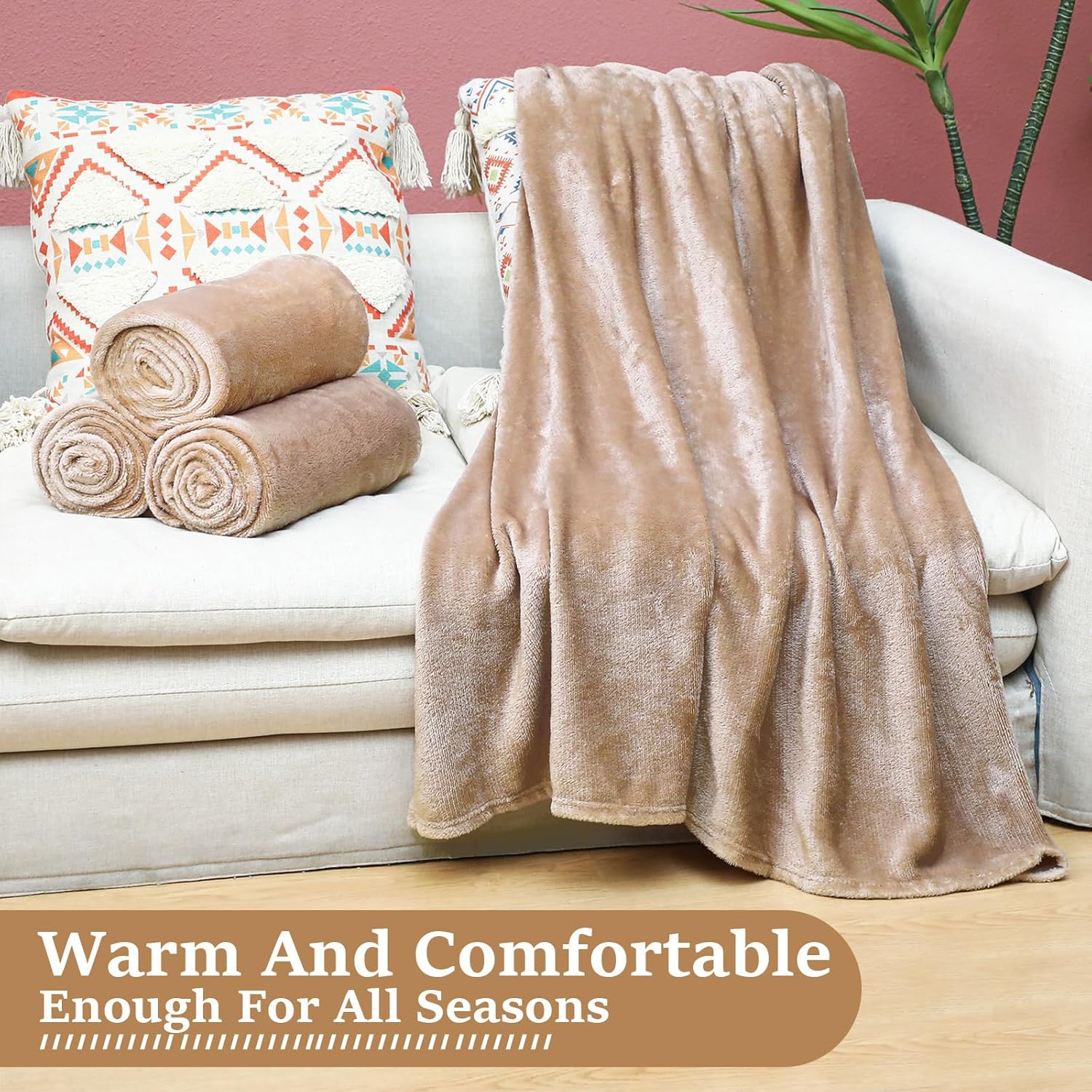 18 Pieces Fleece Blankets Bulk for Wedding 50 x 60 Inch Soft Lightweight Flannel Throw Blankets Bulk for Wedding Guests Home Outdoor Couch Sofa Bed Gifts(Camel)