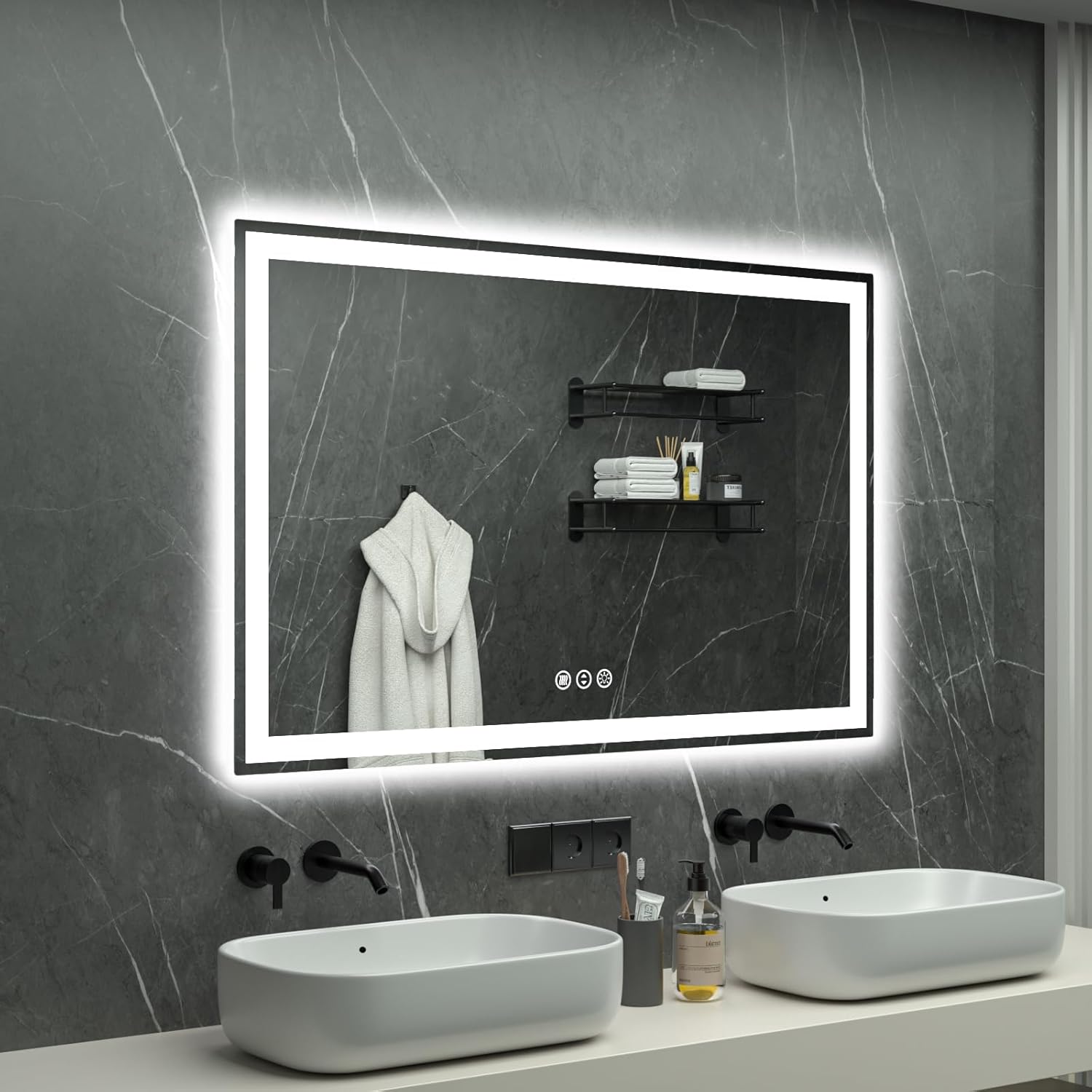 - 【Double Lighting Sources, Backlit+Front-lit】: Miskerm bathroom mirror built-in double light LED strips with backlit and front light, brighter than the mirror with one light. Double light sources which is super bright enough for you to do makeup, skin care, shaving and dressing up in bathroom.