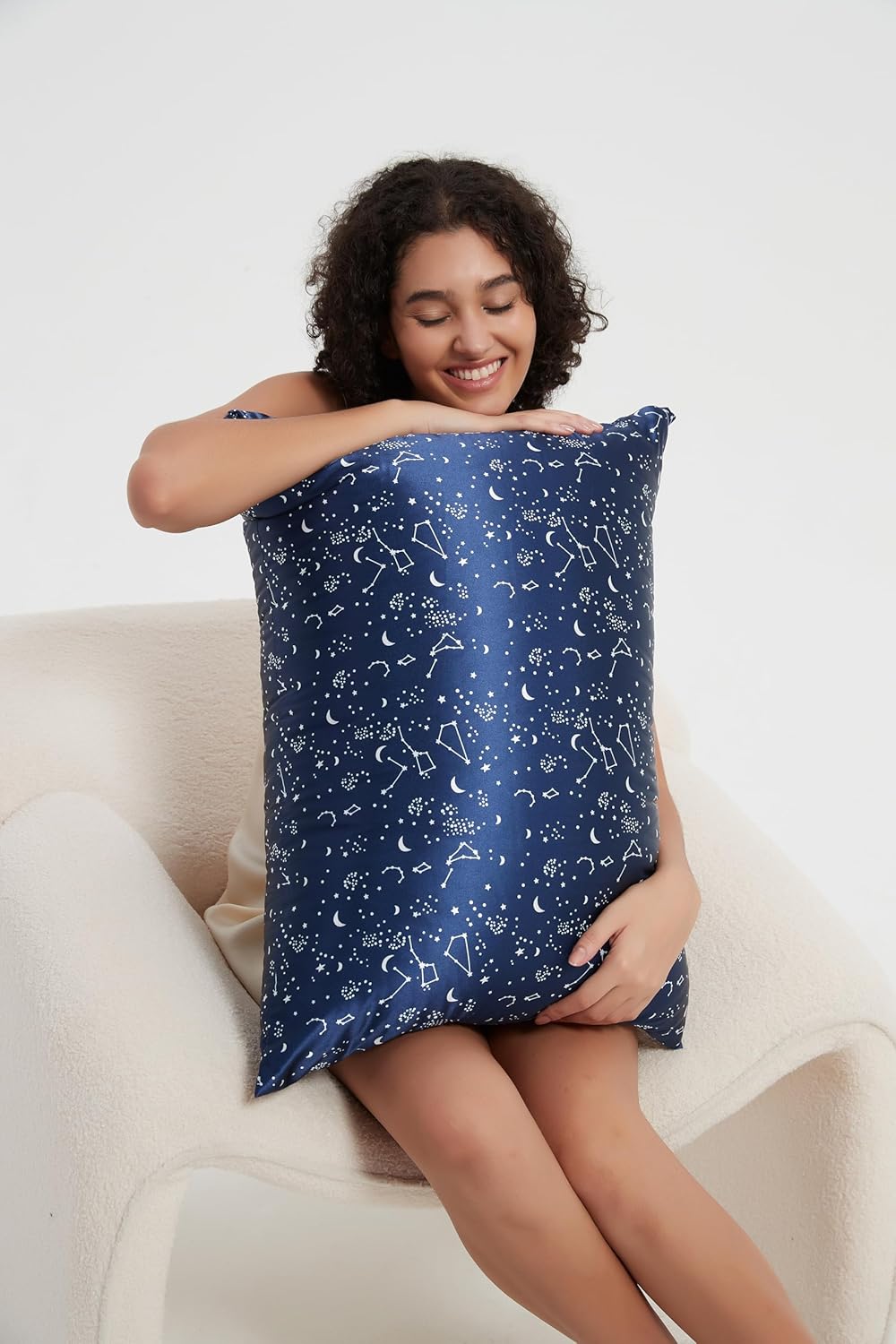 ALASKA BEAR Silk Pillowcase Envelope Closure, 22 Momme 100 Percent Long Overlap Sleeve Mulberry Silk Pillow Case Foldover Design, Machine Washable and NO Zipper, Queen (1, Constellation)