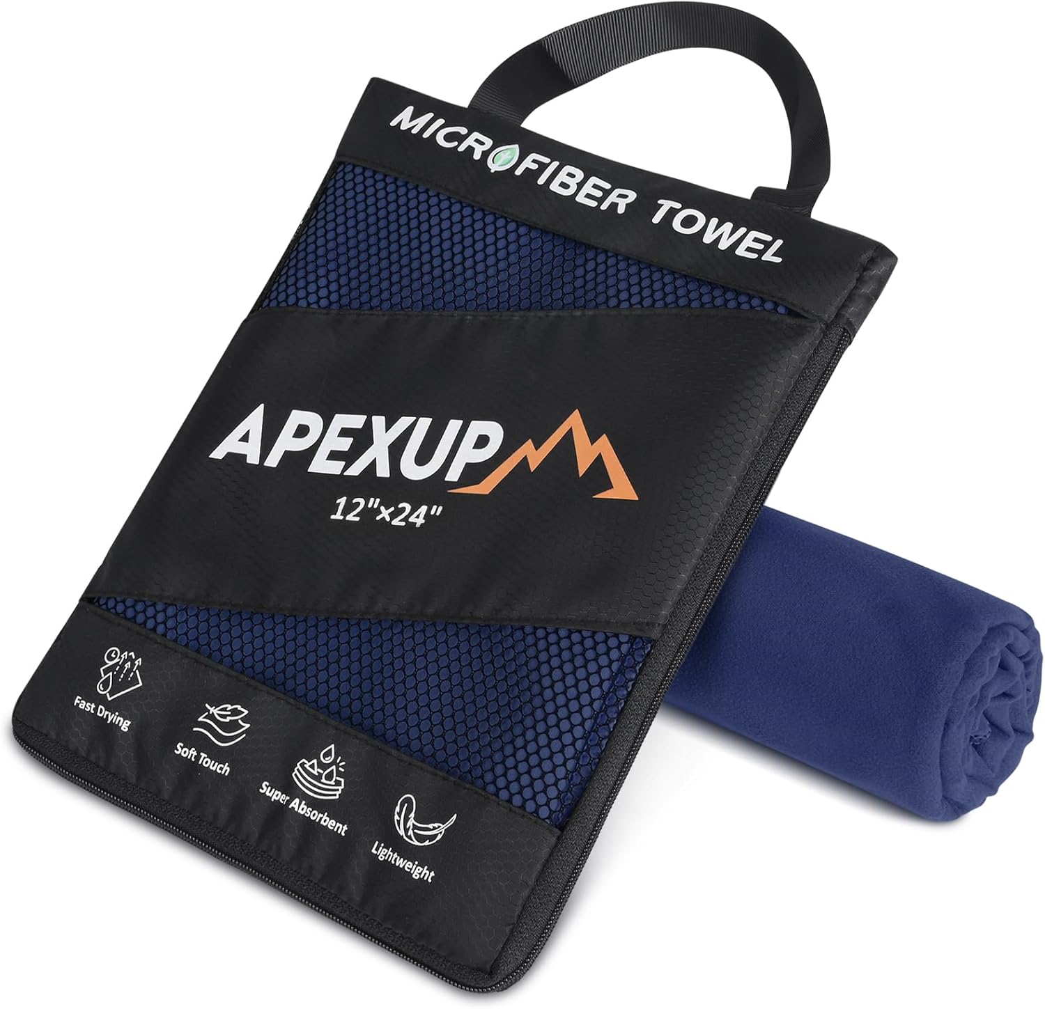 APEXUP Microfiber Travel Towel, Ultra Absorbent Quick Dry Towels, Lightweight Gym Sports Camping Towel for Workout, Yoga, Beach, Shower, Swimming (24"×12", Navy Blue)