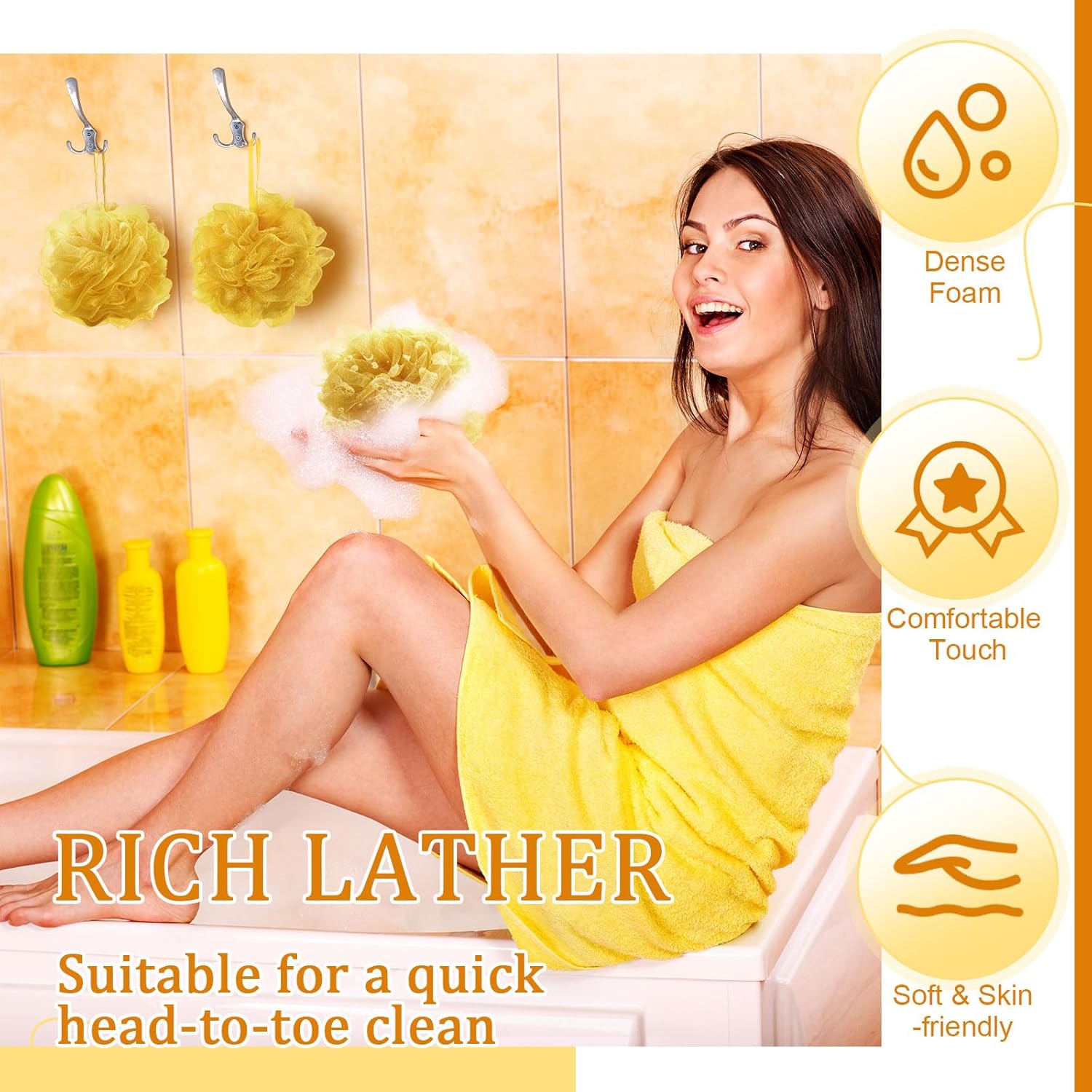- Wedding Atmosphere: holiday bath sponge loofah is characterized by gold, which conforms to the theme of wedding and will add a festive atmosphere to your daily bathing; You can give these shower loofahs to your friends and family on birthday, bridal shower to show them your love and care, and at the same time bring them a happy atmosphere of wedding
