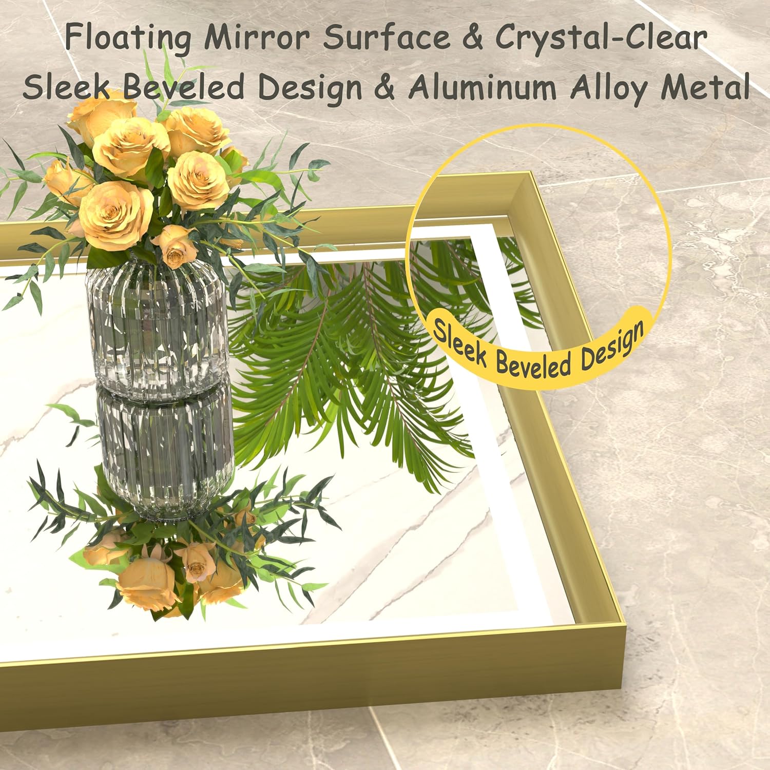 - 【Sleek Modern Design with Floating Illusion】 Featuring a right angle metal frame (available in Black/Gold) and floating glass design, this led mirror adds a minimalist, high-end touch to any bathroom. The seamless wall-mounted design saves space, enhances visual depth, and ensures effortless cleaning with no edge gaps