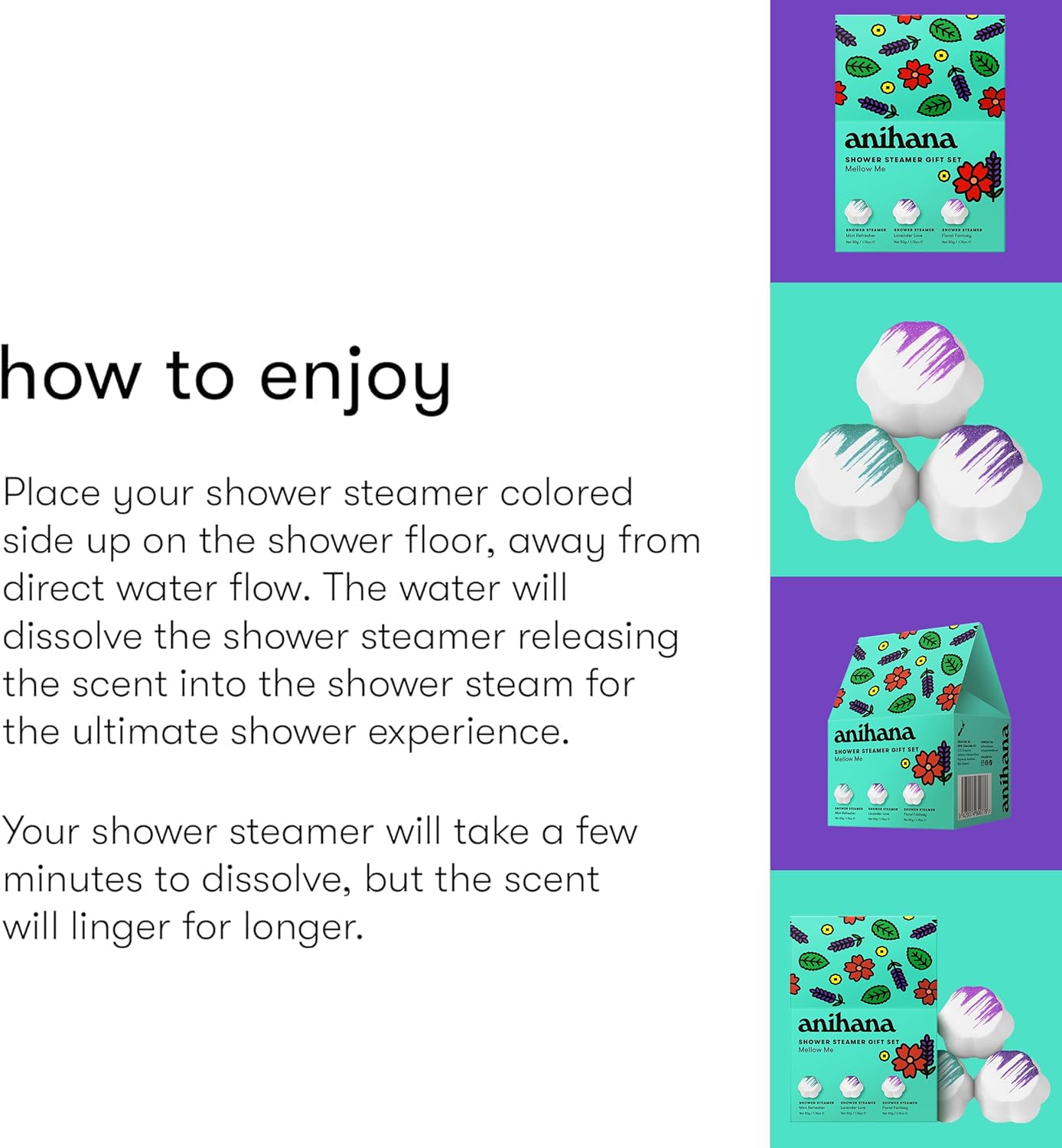 ANIHANA Shower Steamers 3 Pack Gift Set with Essential Oils Paraben Free Mint Refresher, Lavender Love, Floral Fantasy, 1.76 oz Each