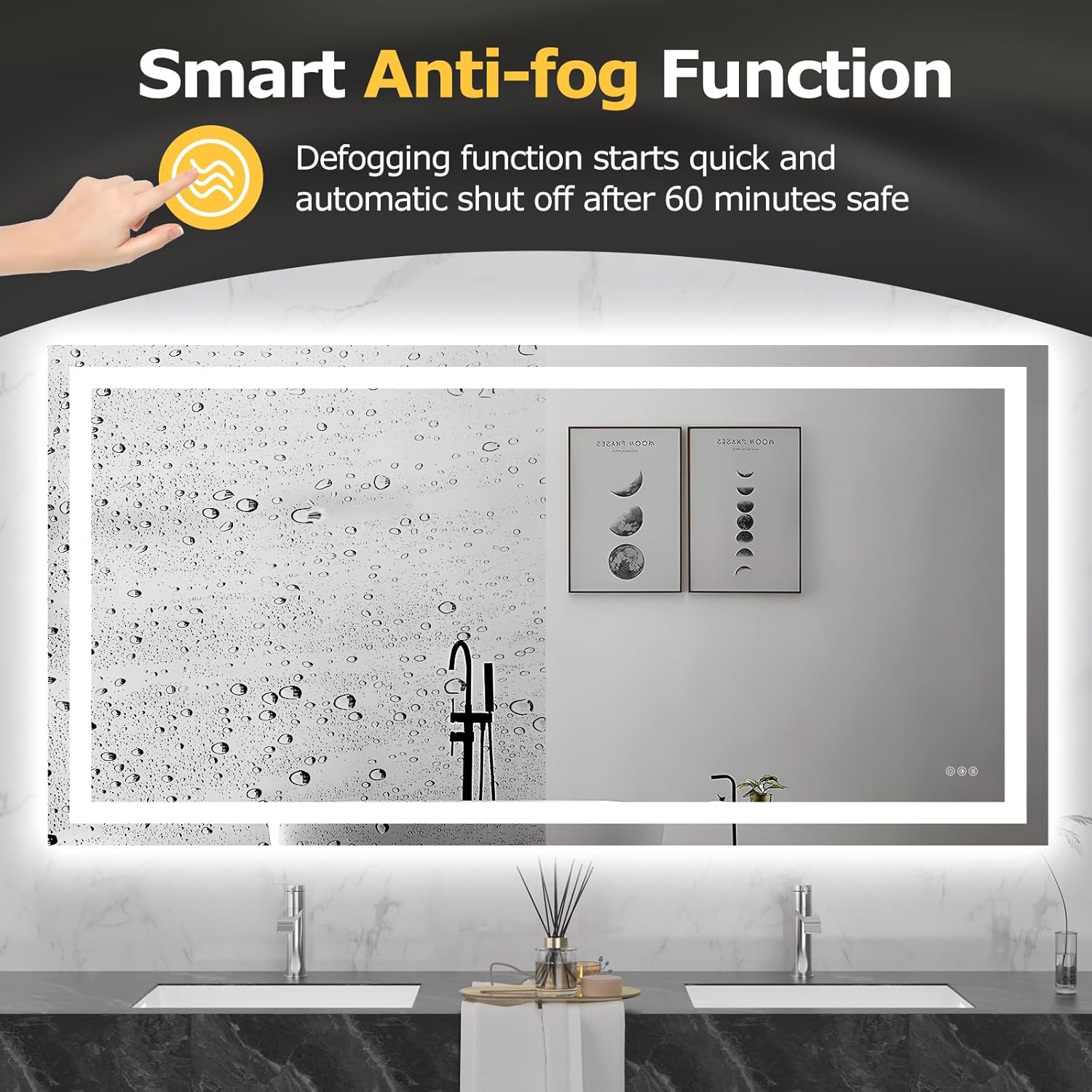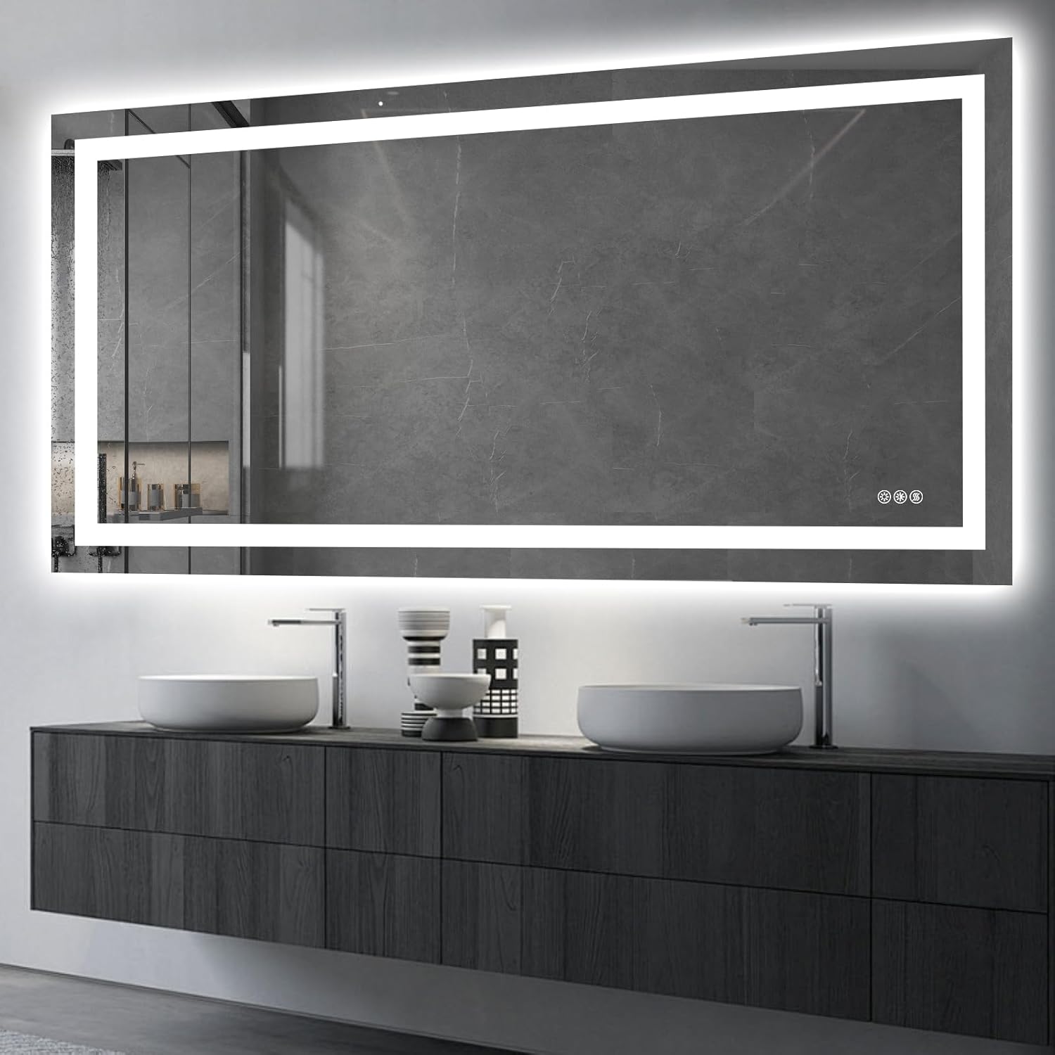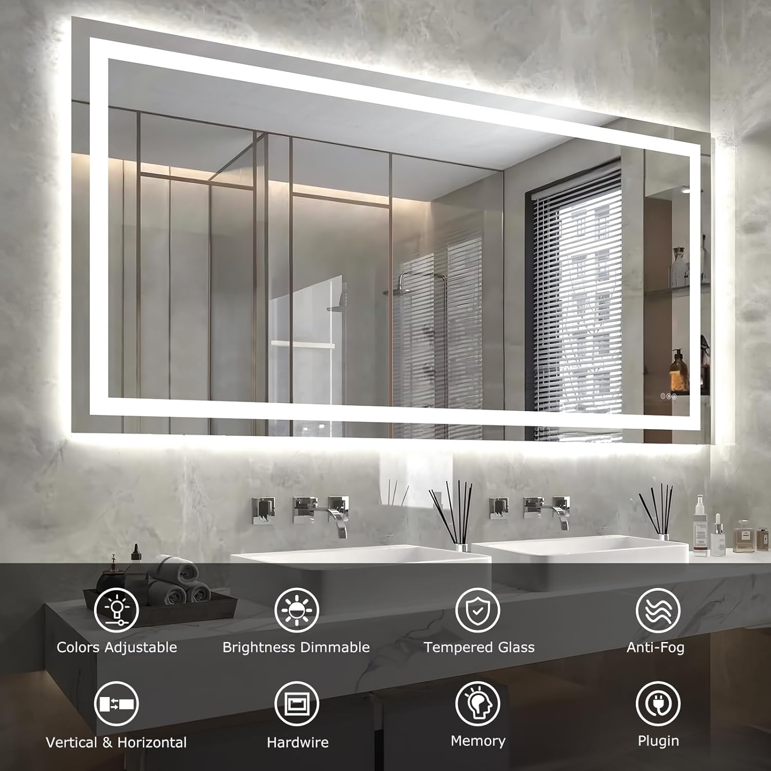 72X36 LED Bathroom Mirror with Lights, Anti-Fog, Dimmable, Backlit + Front Lit, Smart Bathroom Vanity Mirror, Memory Function, Shatterproof, Tempered Glass (Horizontal/Vertical)