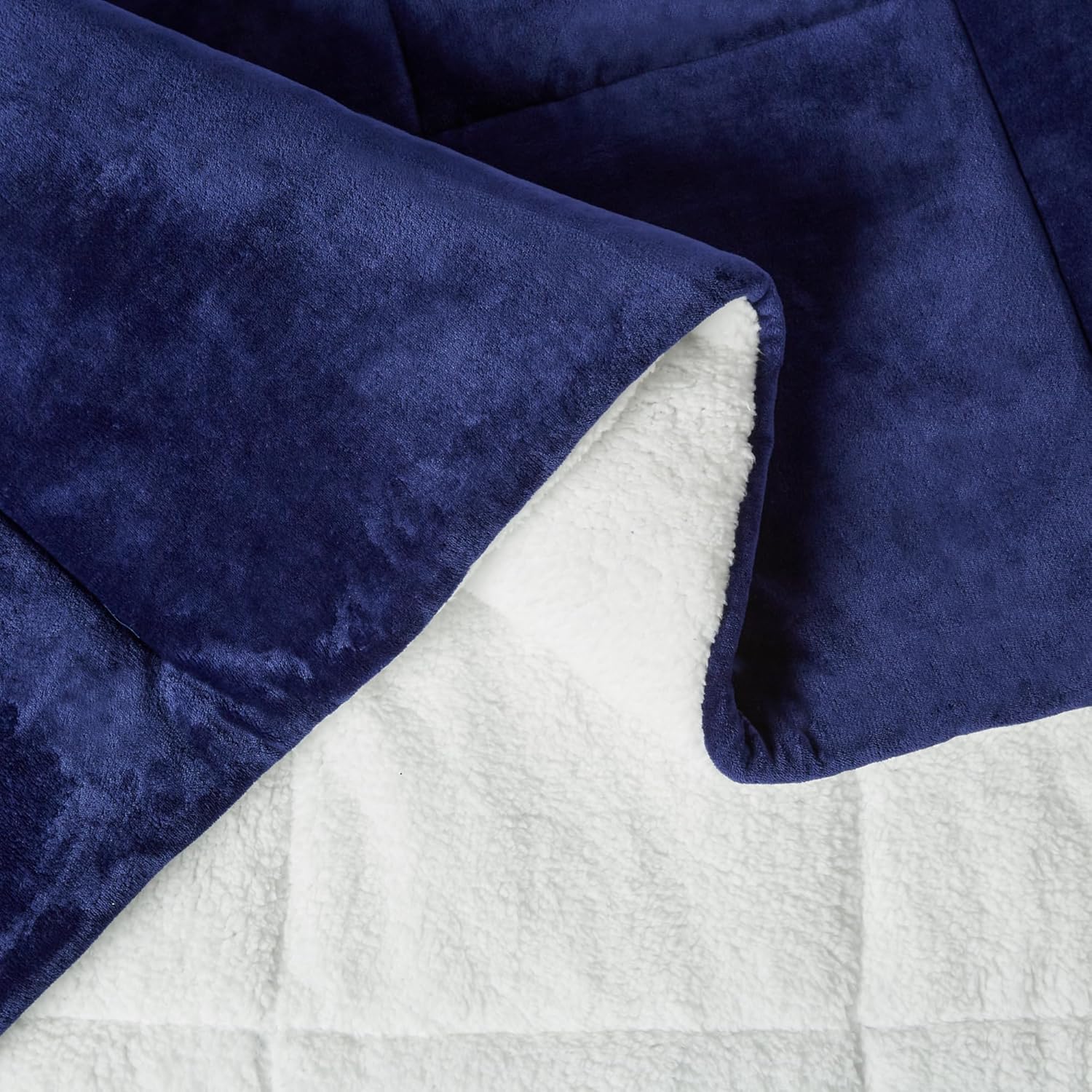 - Reversible with soft micromink polyester in Navy on one side and white faux sherpa fleece on the reverse