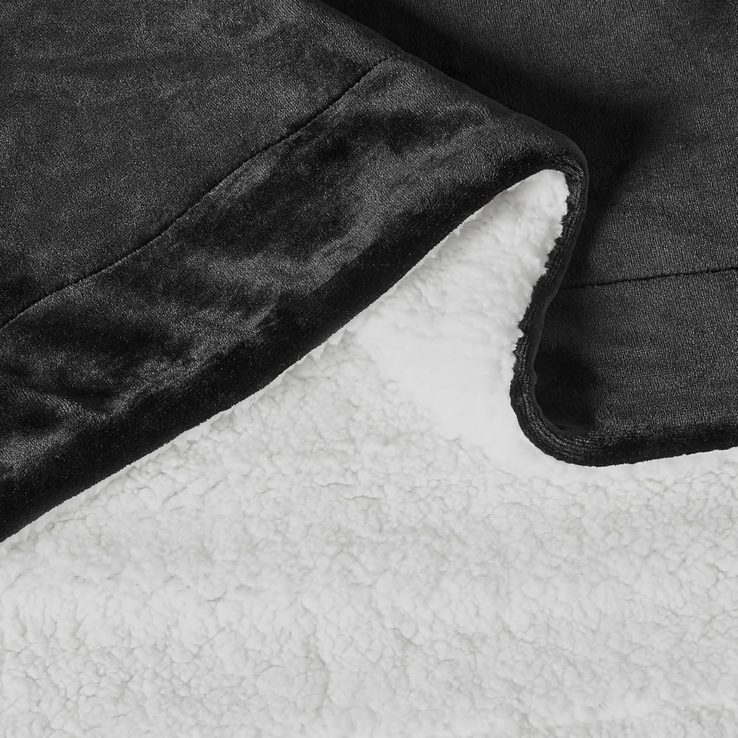 - Reversible design in Black with 220 GSM velvety flannel on one side and 260 GSM plush sherpa on the reverse