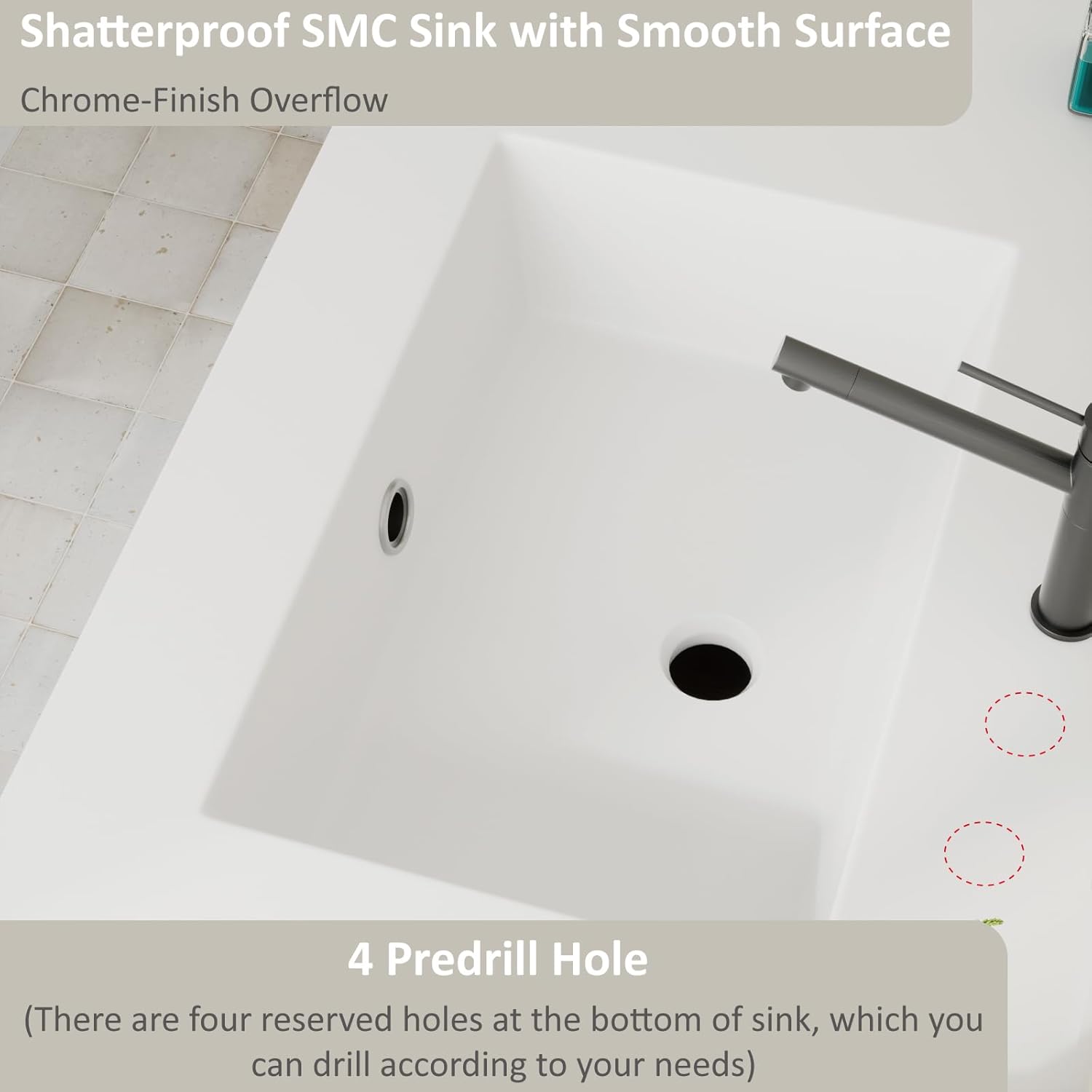 - 【Sturdy and Durable Structure】Crafted with a high-quality SMC integrated basin and a strong stainless steel frame, this bathroom vanity is designed to withstand moisture and humidity, ensuring long-lasting durability. It's built to endure the daily demands of your bathroom while staying easy to maintain