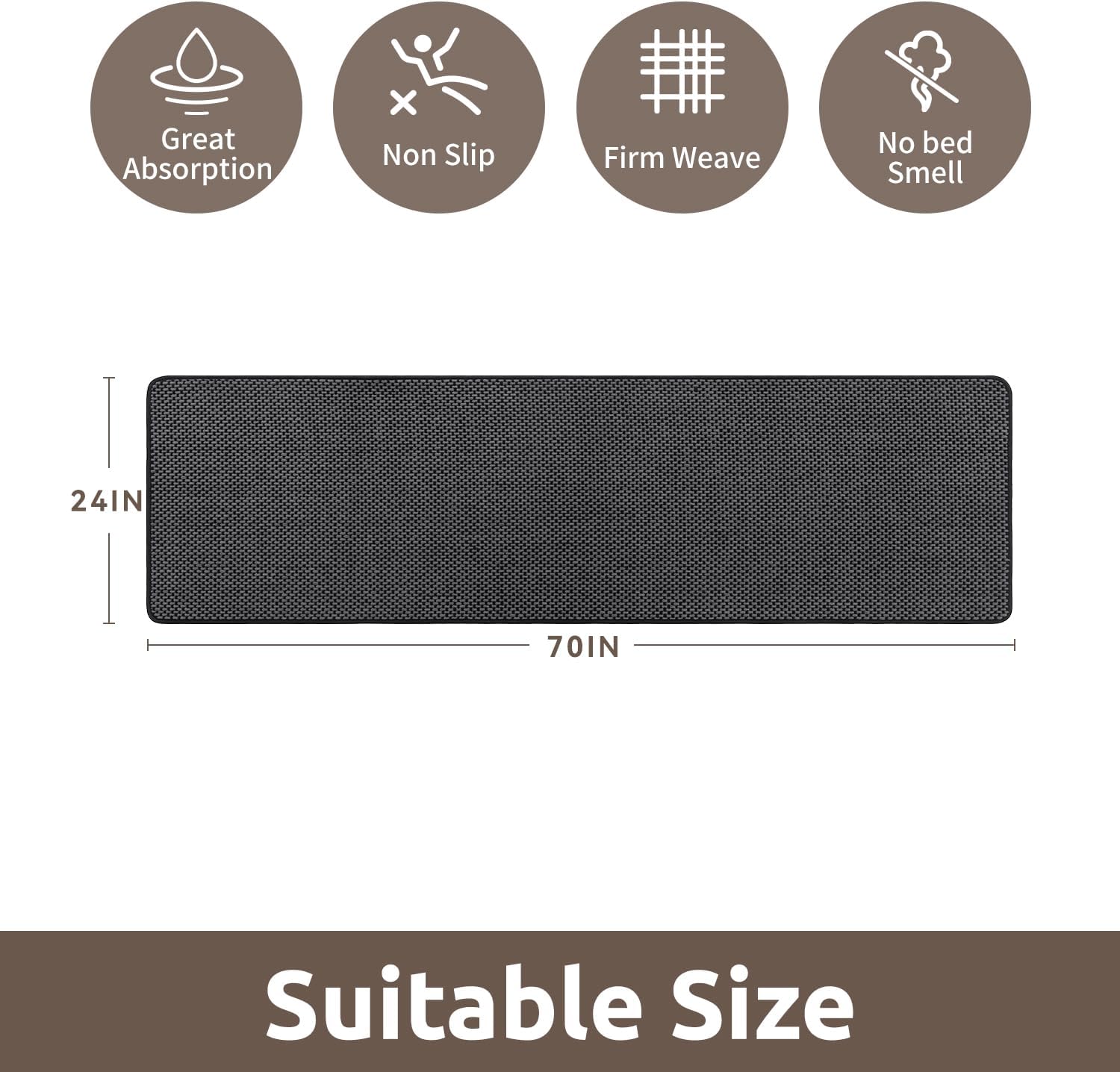 AMOAMI Chenille Bath Mat Super Absorbent Bathroom Mat Quick Dry Low Pile Bath Mats for Bathroom Washable Rubber Backed Bathroom Runners Fit Under Door, Front of Bathtub, Sink, Darkgrey&Black 24"x70"