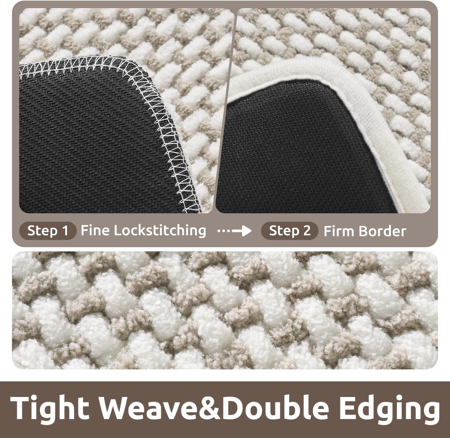 AMOAMI Chenille Bath Mat Super Absorbent Bathroom Mat Quick Dry Low Pile Bath Mats for Bathroom Washable Rubber Backed Bathroom Runners Fit Under Door, Front of Bathtub, Sink, Beige&White 24"x48"