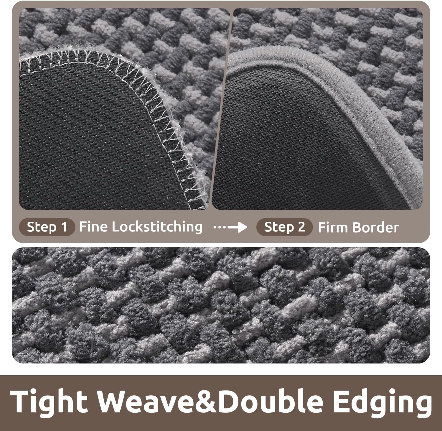 - [Update Double Edge & Color] Tightly woven bathroom rugs with double locking edge process makes bath mats more stable, not easily dispersed, more robust than most of others chenile bathroom mats. Stylish two-color design versatile, chenille bath rugs make your feet feel relaxed. Integrated design of surface and backing prevents shedding and deformation.