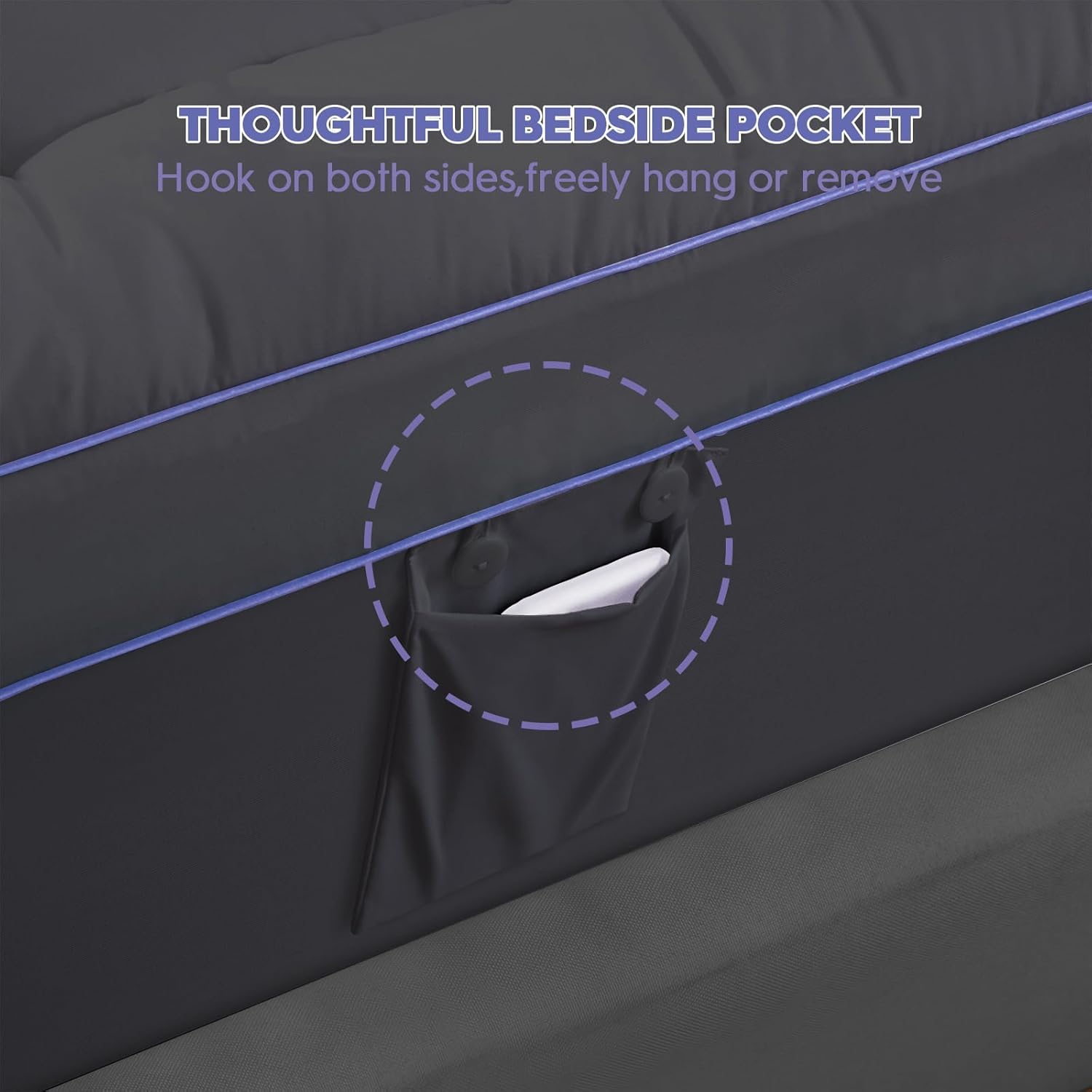 - 【Intimate and Elegant】: ABENE foam queen size mattress topper adopts innovative design and comes with an intimate bedside bag for small items such as mobile phones, remote controls, glasses, etc., creating additional storage and tidy space, eliminating the trouble of pile-up on the bed. This storage bag is connected with buttons, and there are hanging ears on both sides of the bed, which can be installed and removed as needed