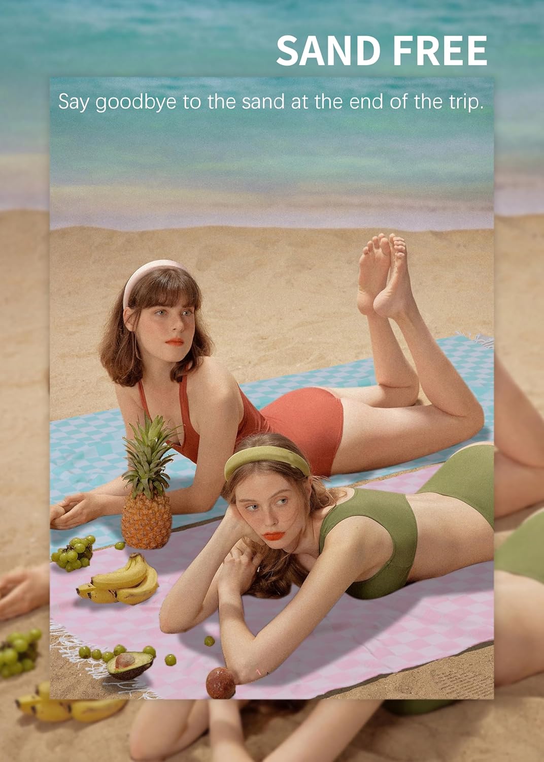 - [Quick-Drying & Sand free] Designed to dry in no time, this beach towel stays fresh and clean while resisting sand, keeping your belongings and skin free of gritty residue for a carefree day outdoors.