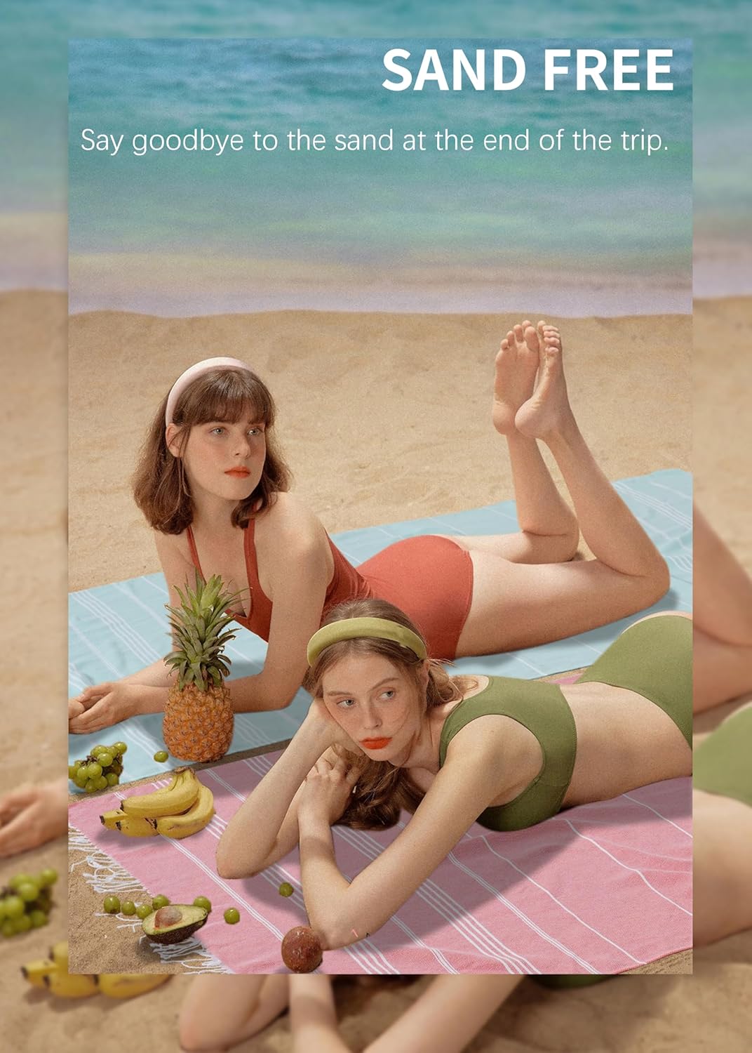 - [Quick-Drying & Sand free] Designed to dry in no time, this beach towel stays fresh and clean while resisting sand, keeping your belongings and skin free of gritty residue for a carefree day outdoors.