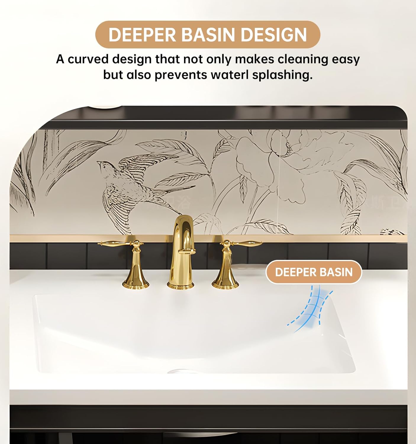 - 【Spacious Open Mirror Cabinet Design】The Bathroom Vanity includes a stylish open mirror cabinet that enhances both functionality and visual appeal, this Mirror Cabinet offers ample storage space without compromising on style. The open Mirror Cabinet allows for easy access to your toiletries and decor items, keeping your bathroom organized and clutter-free.