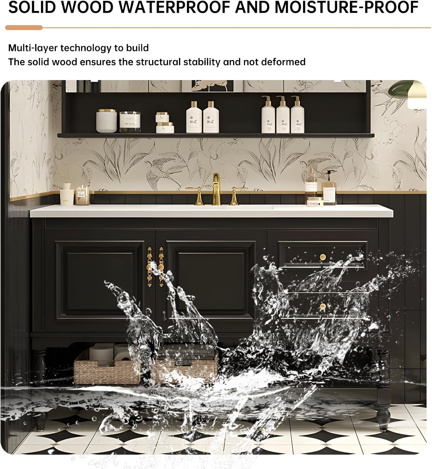 - 【Premium Solid Oak Construction】Bathroom Vanity Cabinet is crafted from high-quality solid oak wood, ensuring durability and a timeless aesthetic.The robust construction provides lasting strength and elegance, making it the perfect addition to any bathroom.