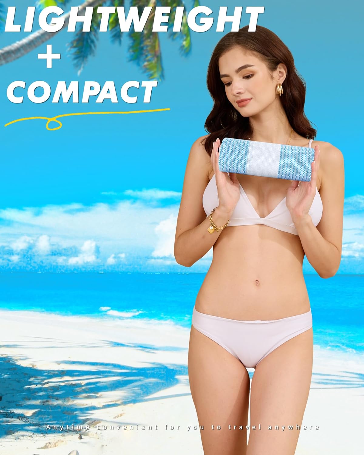 - ★QUICK-DRY& PORTABLE : Thanks to its material properties, this beach towel dries rapidly, reducing waiting time. Additionally, it is lightweight and can be easily stuffed into a beach bag without taking up much space. Whether you're heading to the beach, pool, or using it for travel, yoga, or other activities, it's extremely convenient to carry.