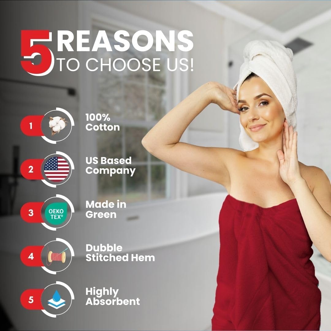 - šš¬š¬% šš¼ššš¼š» š§š¼šš²š¹: Our large bath towels are made from 100% ring spun cotton, and this towel is incredibly soft and plush. It offers a luxurious feel against your skin, making every bath or shower a spa-like experience.