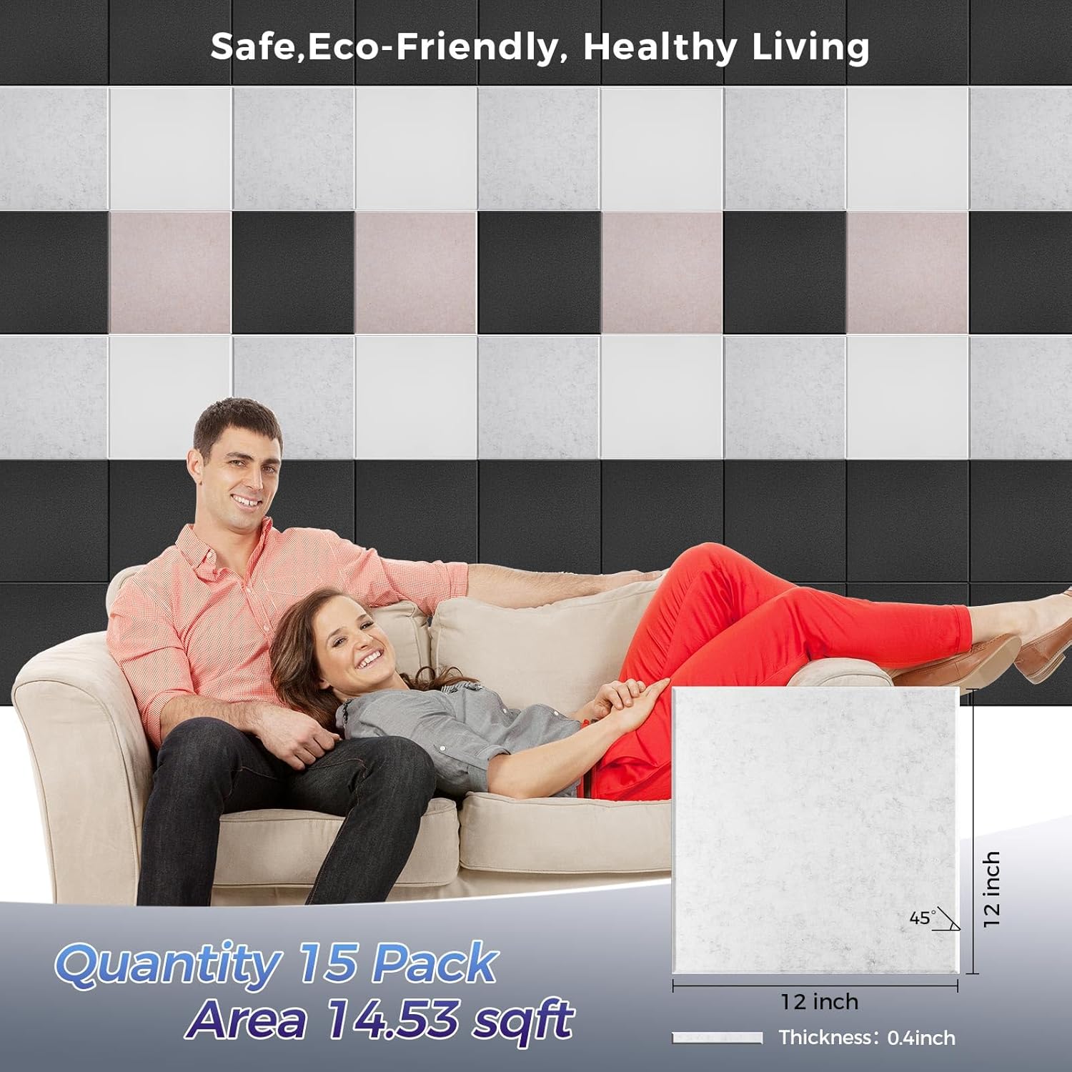 15 pcs 165dtex Microfiber Acoustic Panels ,Self-Adhesive Soundproof Wall Panels, 12 x 12 x 0.4 in Sound Proof Foam Panels for Walls, High Density, Noise Dampening Panels for Home Studio(Gray)