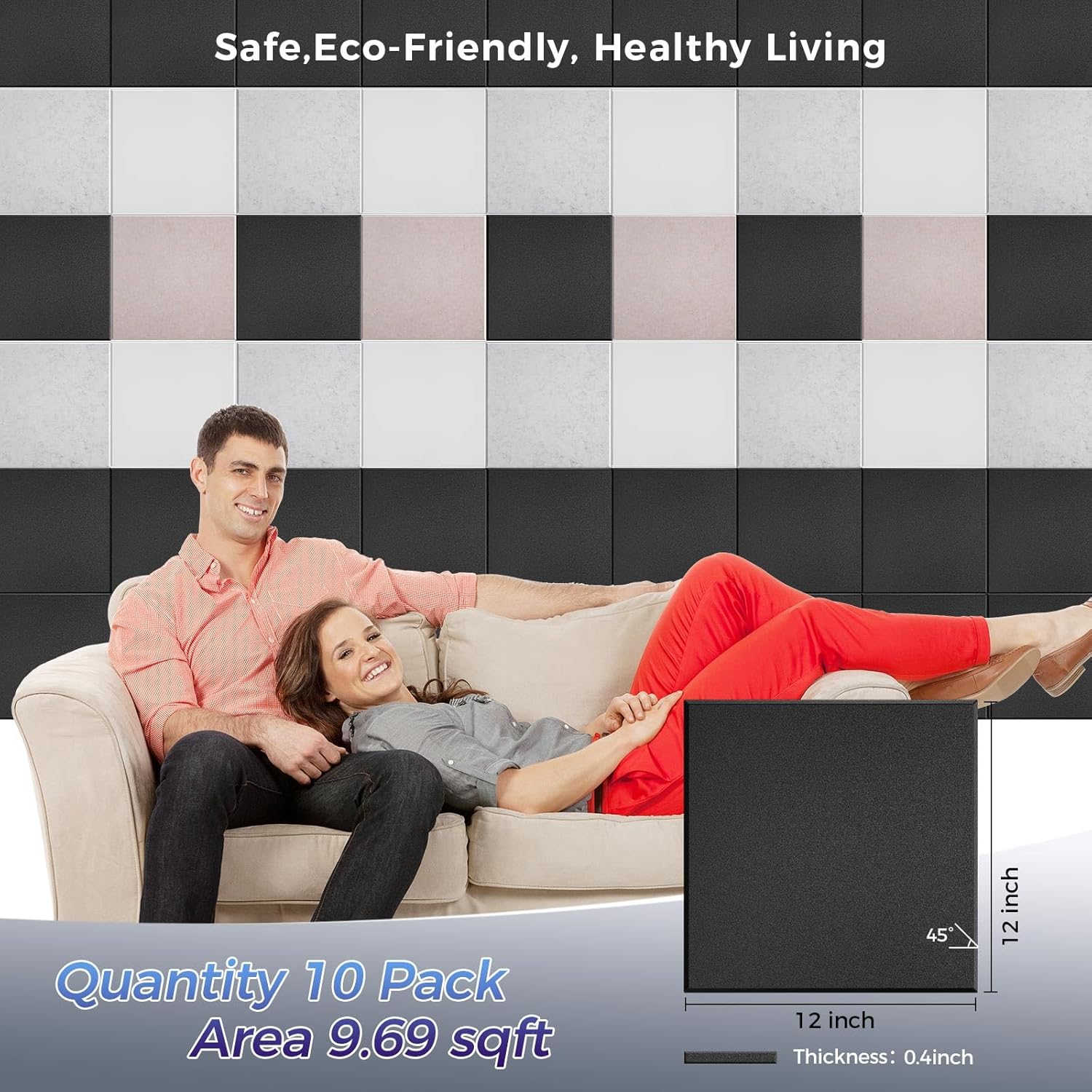 - 【High-density Material】: Each acoustic panels is made of 0.8lb/ft³ high-density microfiber material, which has excellent durability, fire resistance, moisture resistance, not easy to damage or deform, and can maintain its excellent sound insulation effect after long-term use. In addition, soundproof wall panels has no irritating odor and is safe to breathe and touch