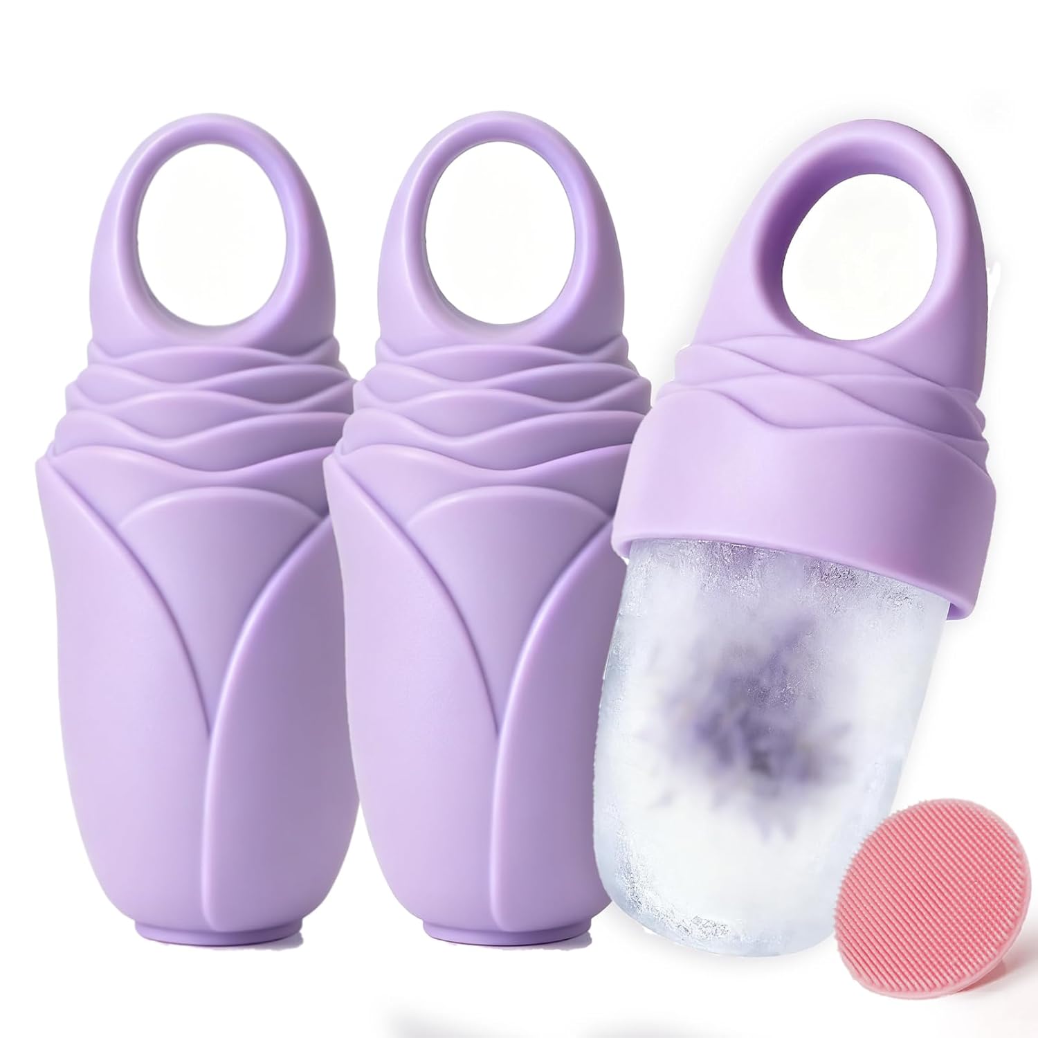 3 Pcs Facial Ice Roller Silicone Mold Reusable for Face Women and Eye Neck Cold Skin Care Tools Freezer De Puff Eye Bags Reduce Migraine Pain Purple