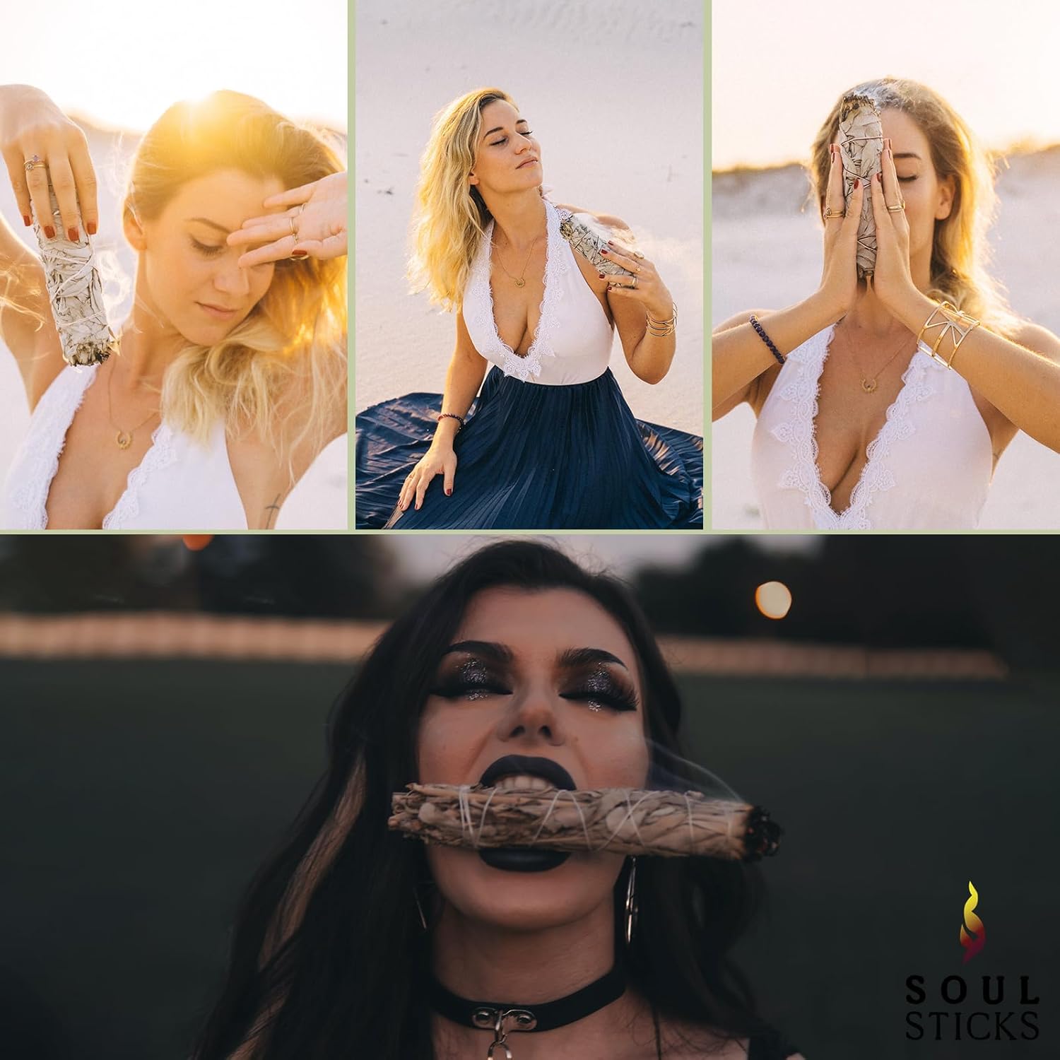 Ancient VEDA 6" White Sage Smudge Sticks for Cleansing House, Meditation, Yoga, Negative Energy Cleanse, and Smudging with Starter Guide | 6 Inch Organic California White Sage Bundles (6 Pack)