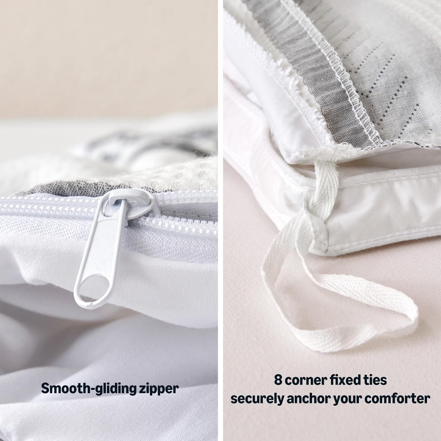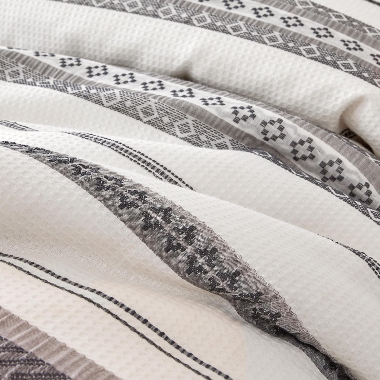 - MODERN STRIPED DESIGN: Neutral waffle stripes blend with farmhouse or modern decor. Hidden envelope closure keeps comforters secure
