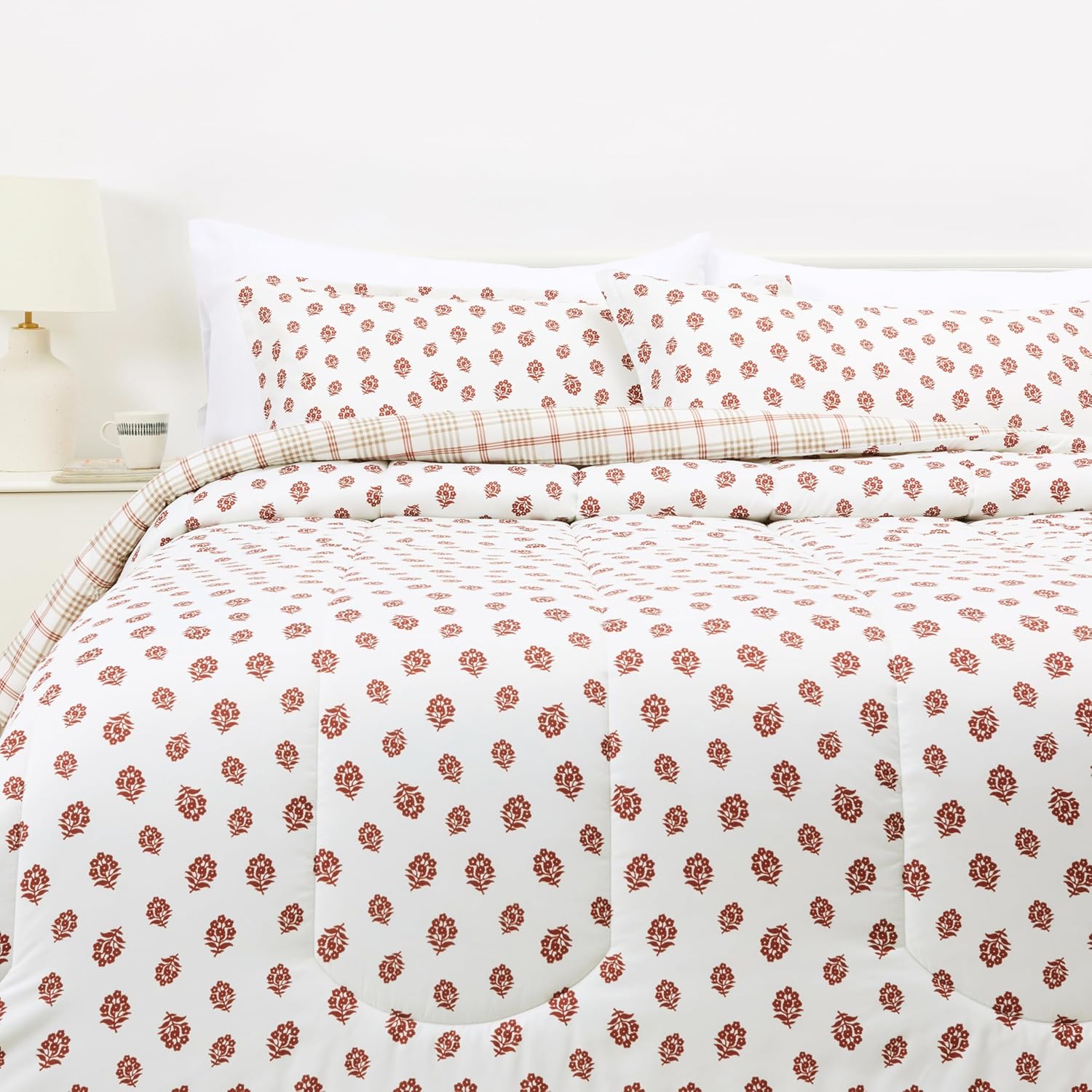 Amazon Basics Lightweight Microfiber Comforter Sets, 3-Pieces, Off White, Floral, King