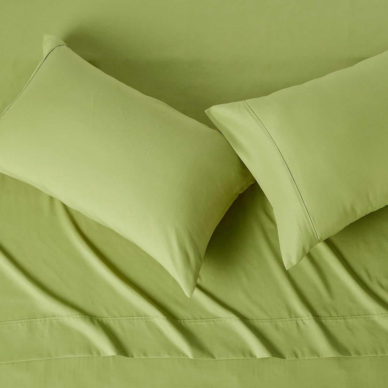 - Bed sheet set in Green creates a cozy sleeping space