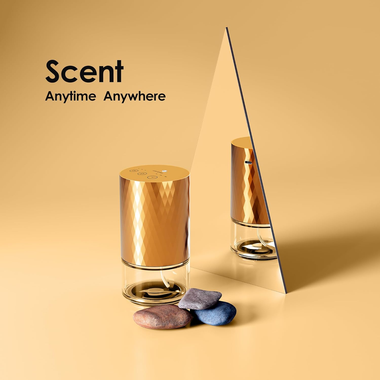 Airversa Waterless Diffuser Essential Oil 100ml Capacity Scent Air Machine for Home Aromatherapy Premium Metal Nebulizer Battery Operated 3 Mist Settings Timers Color Light AN5(Gold)