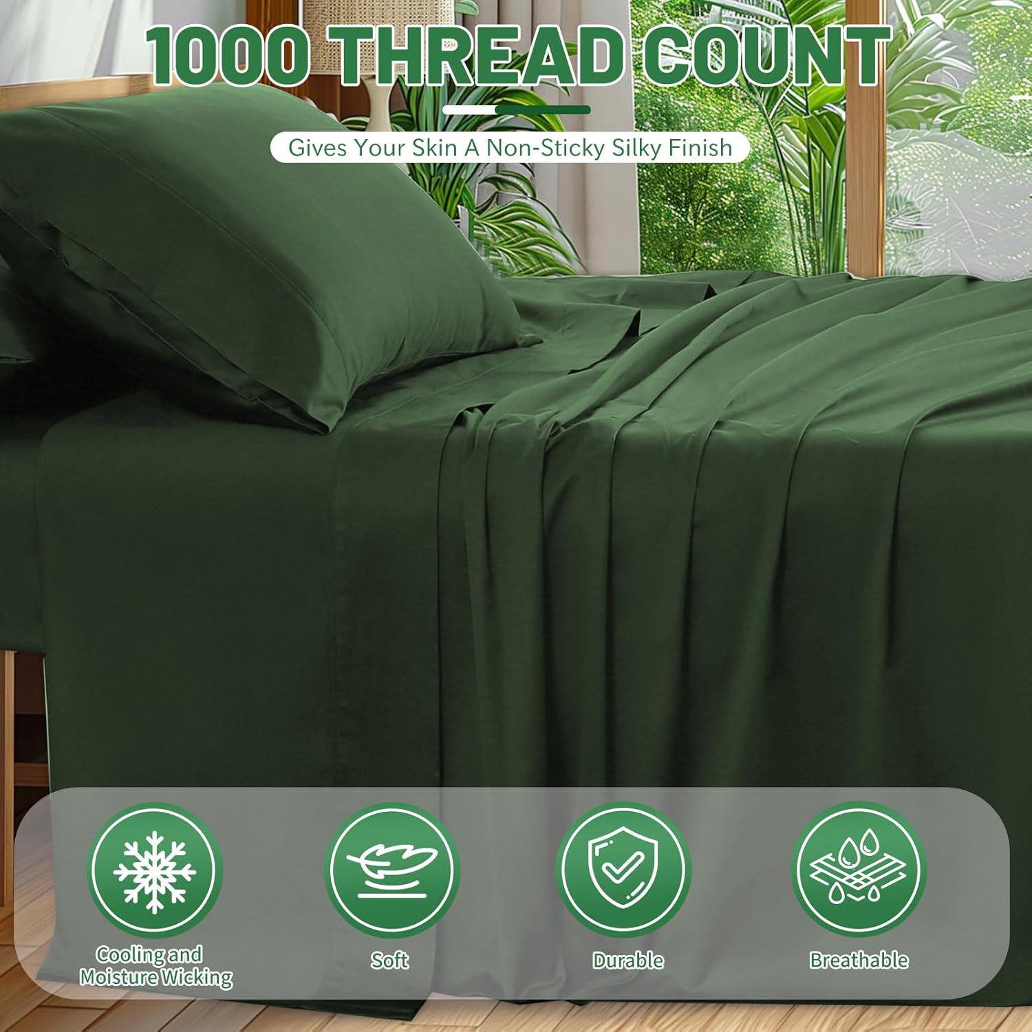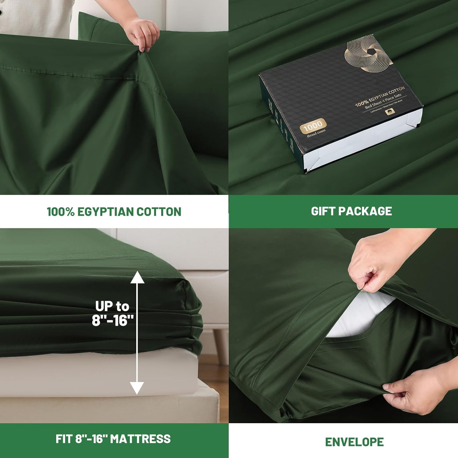 100% Egyptian Cotton Sheets Cal King Sheet Set 1000 Thread Count Sateen Weave Soft Breathable 16-Inch Deep Pocket 4PCS(California King,Forest Green)