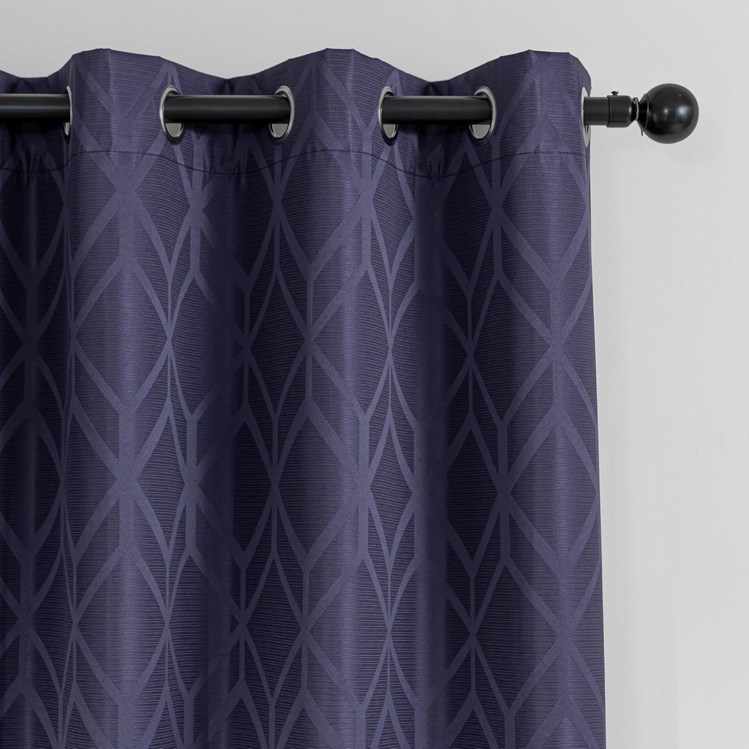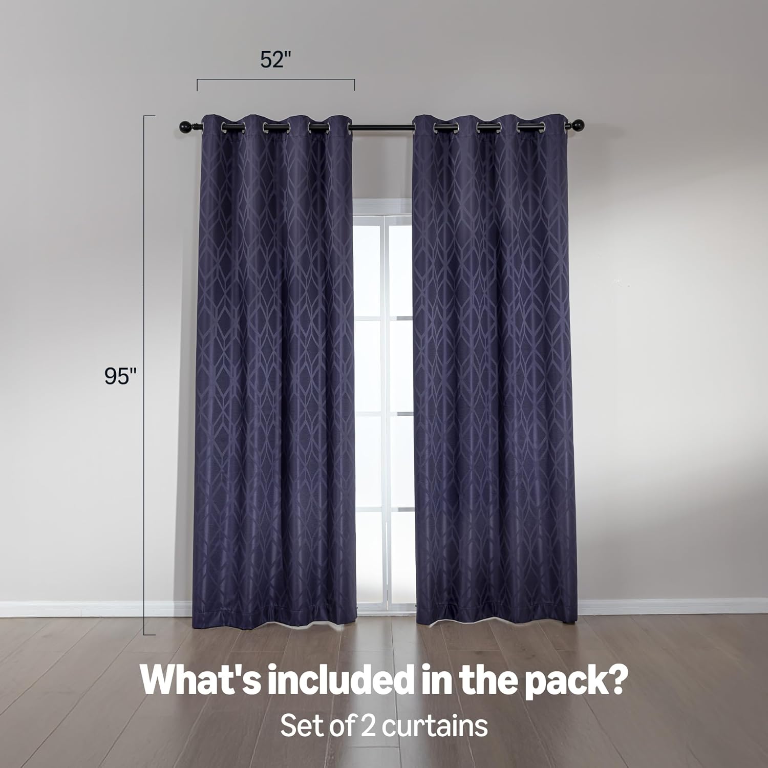 Amazon Basics Jacquard 2-Piece 100% Blackout Curtains, Living Room and Bedroom Drapes, Thermal Insulated Window Treatment, 52"x95", Dark Blue