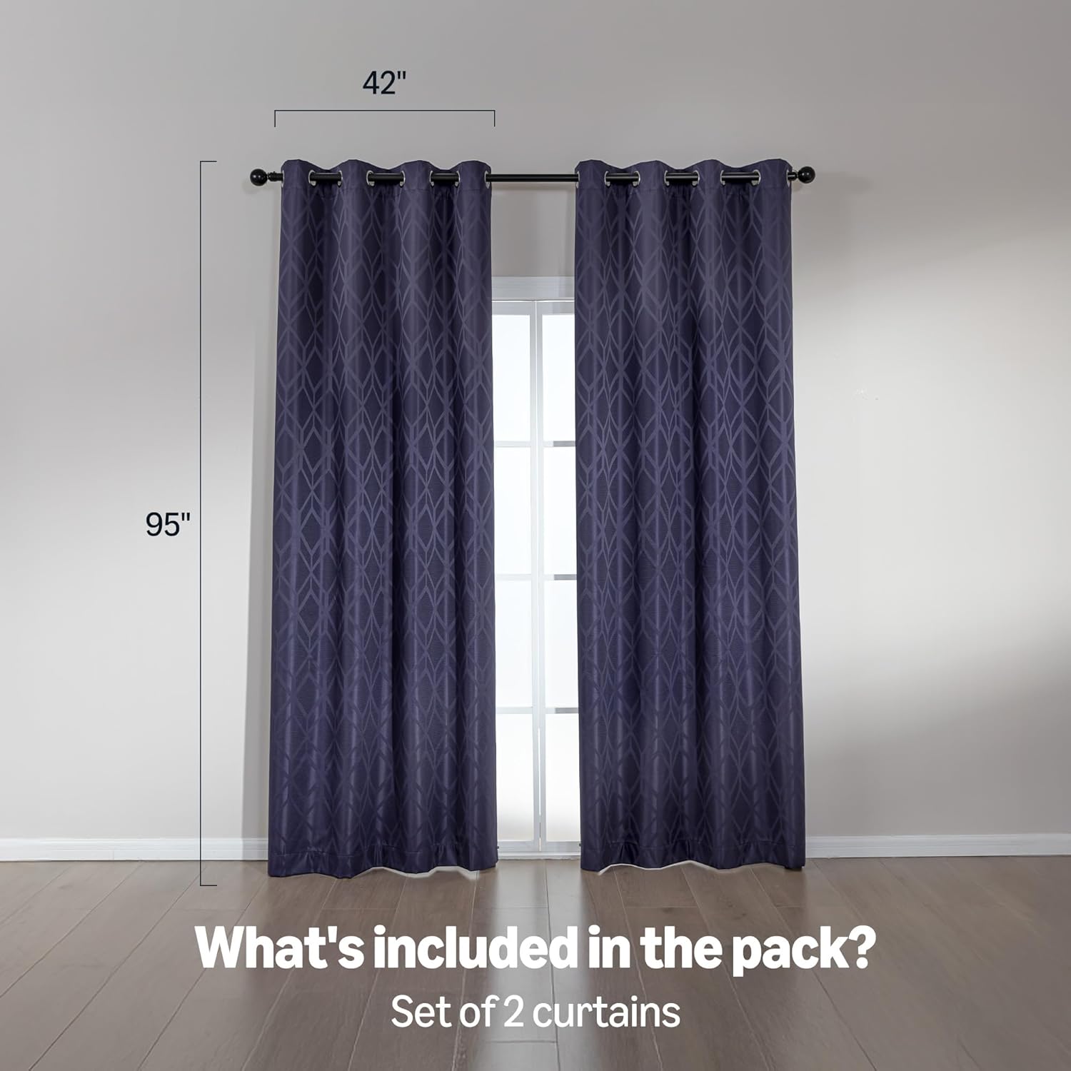 Amazon Basics Jacquard 2-Piece 100% Blackout Curtains, Living Room and Bedroom Drapes, Thermal Insulated Window Treatment, 42"x95", Dark Blue