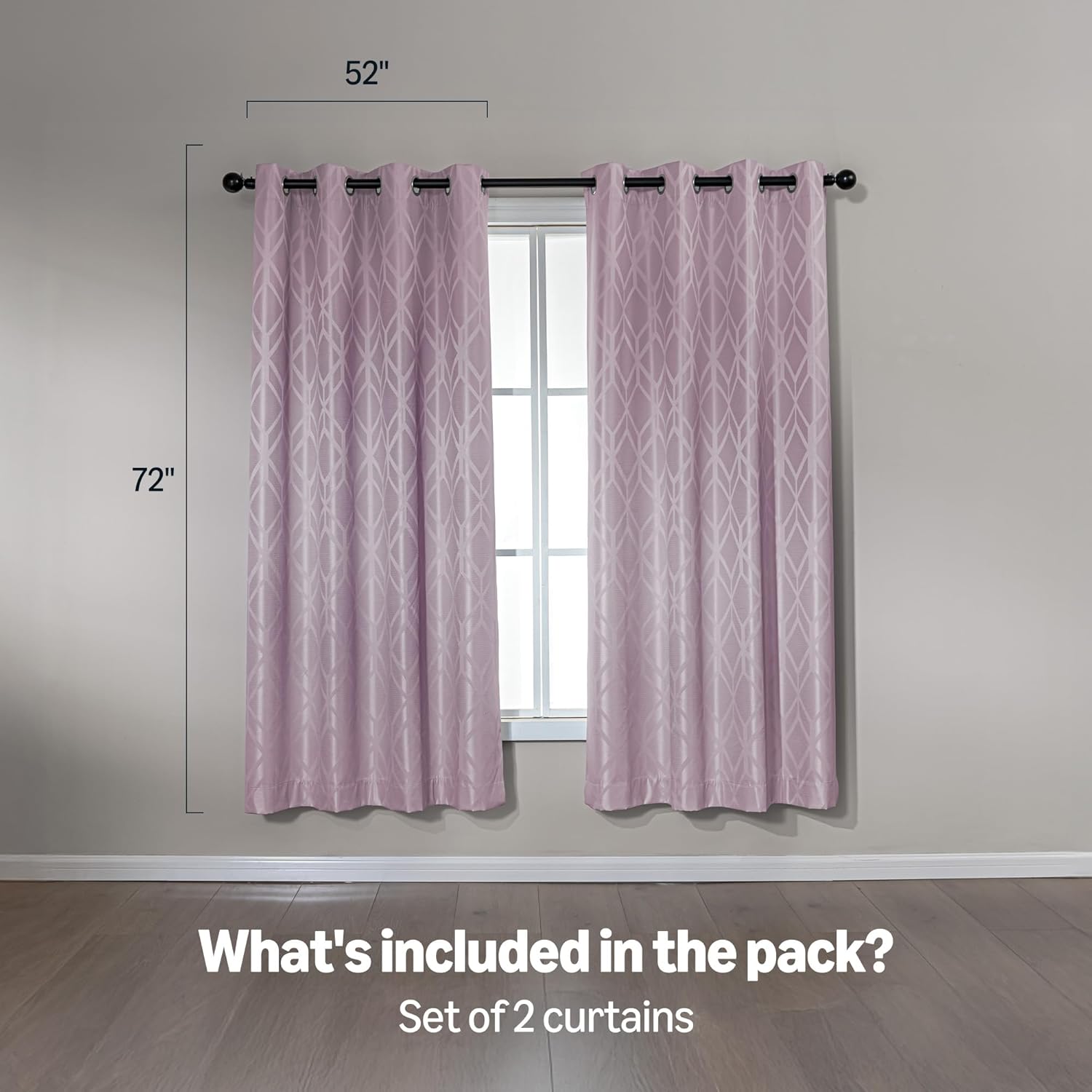Amazon Basics Jacquard 2-Piece 100% Blackout Curtains, Living Room and Bedroom Drapes, Thermal Insulated Window Treatment, 52"x72", Pink