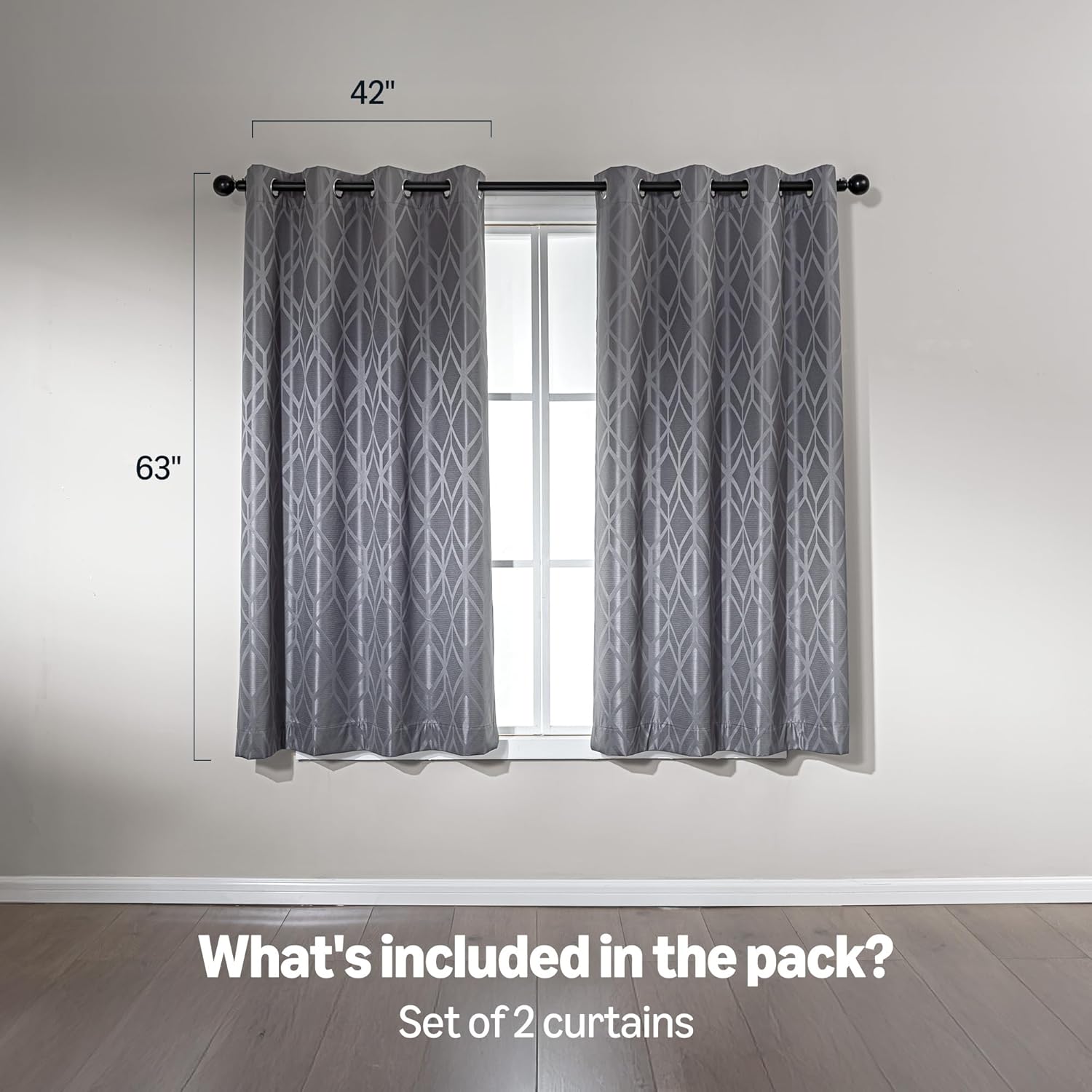 Amazon Basics Jacquard 2-Piece 100% Blackout Curtains, Living Room and Bedroom Drapes, Thermal Insulated Window Treatment, 42"x63", Grey