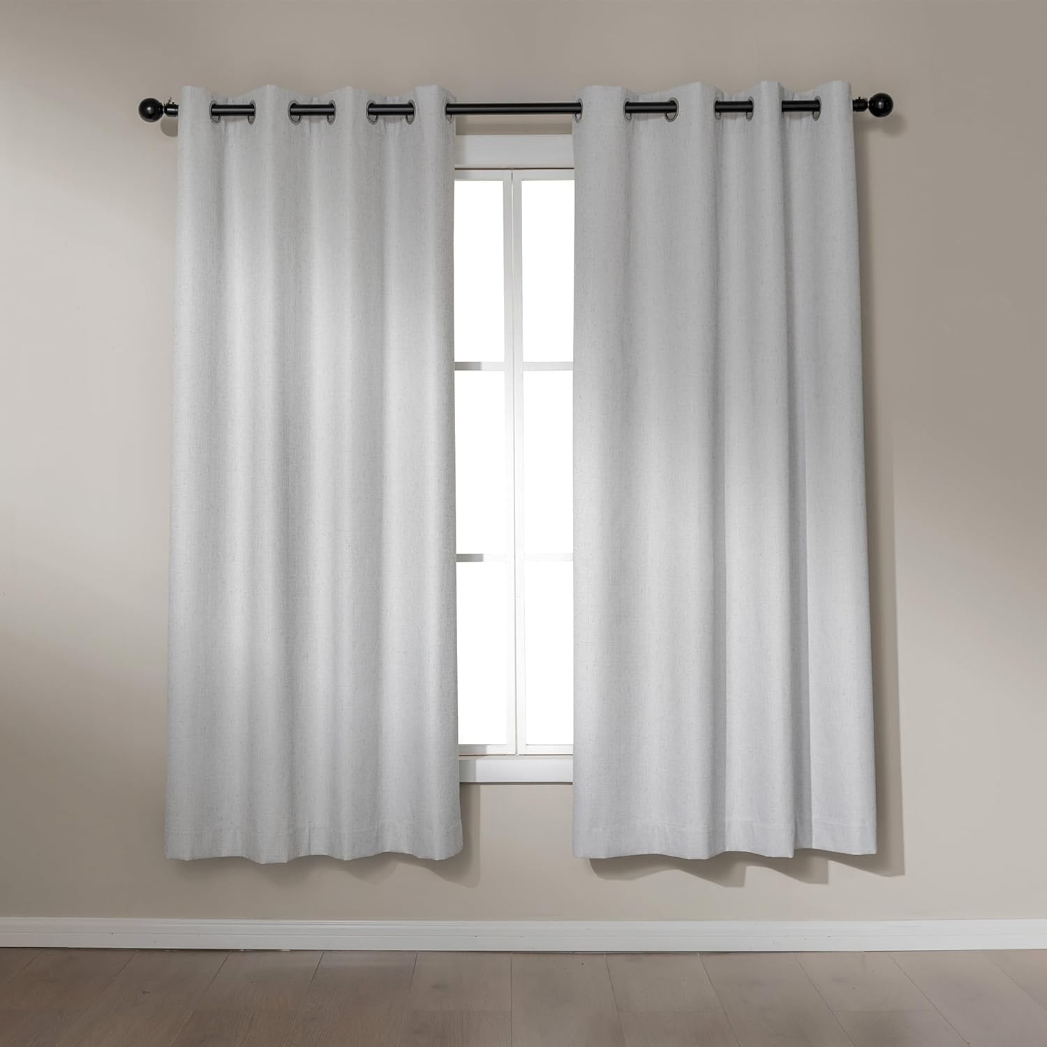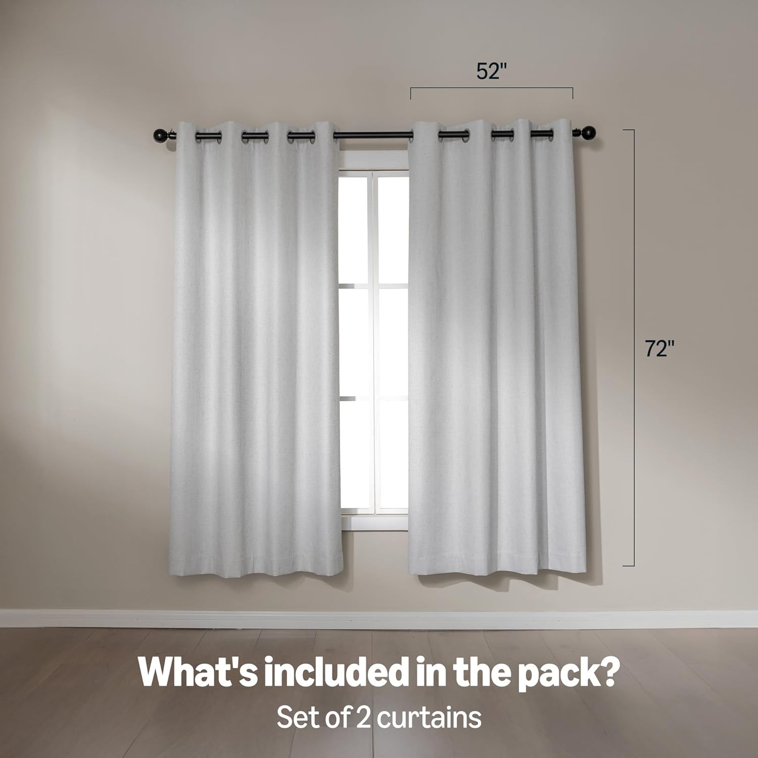 Amazon Basics Faux Linen Blackout Curtains for Bedroom and Living Room, 2-Piece Set with Grommets, 52" W x 72" L, White