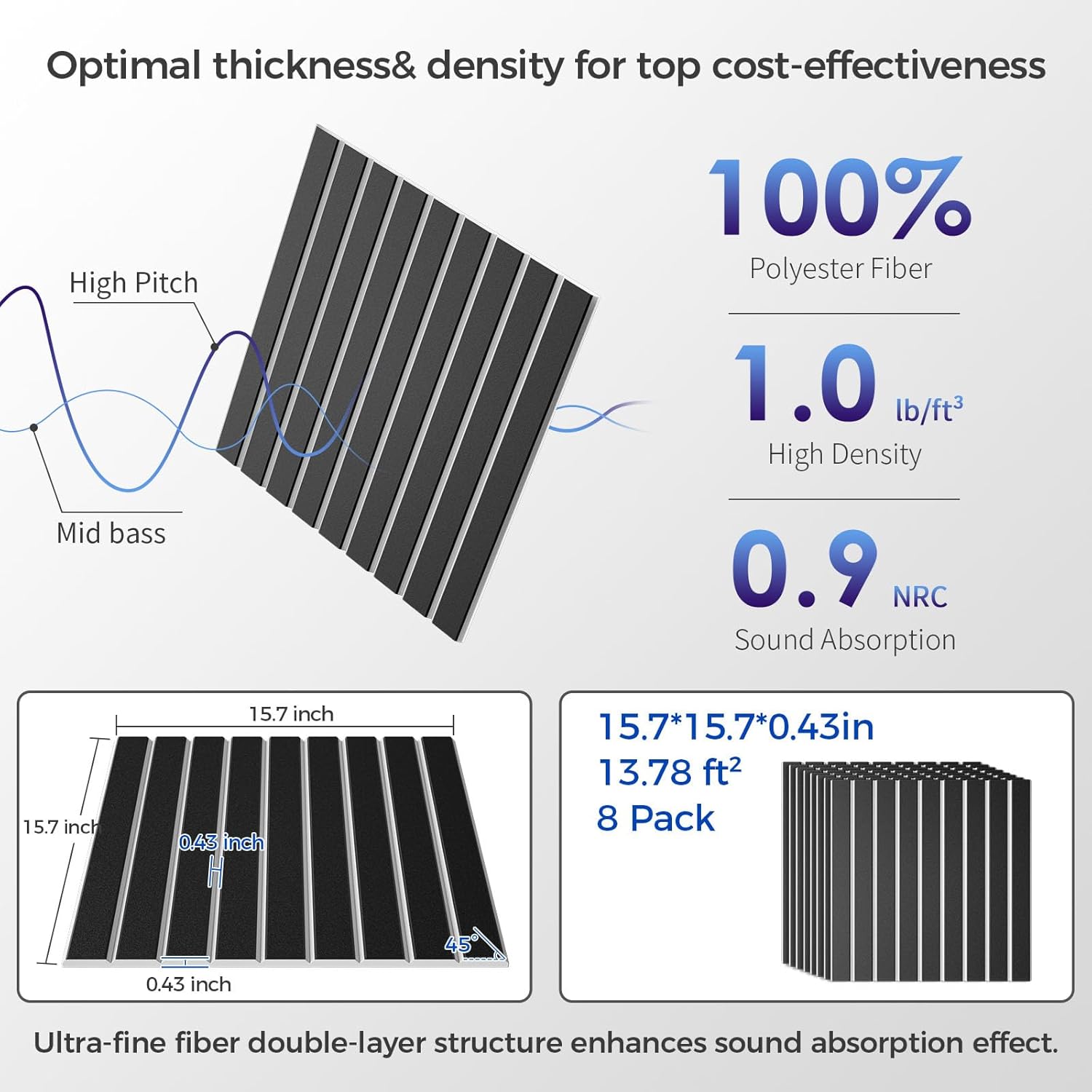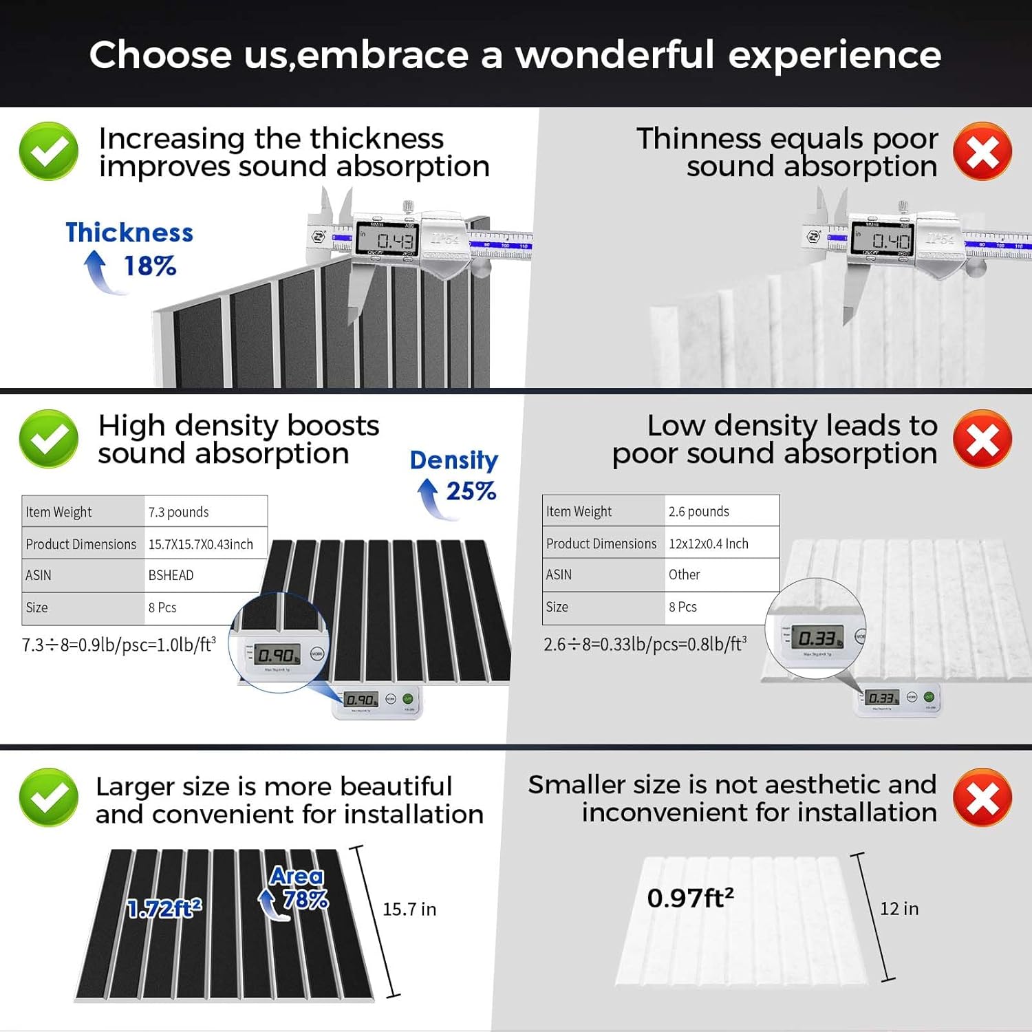 - Widely Applicable: Acoustic panels self adhesive size: 15.7" x 15.7" x 0.43", and the thickness is 8% thicker than the traditional thickness, it can provide more effective noise blocking and is suitable for a variety of high-demand environments. Suitable for home theaters, professional studios, music rooms, It can effectively improve the audio effect and enhance the work and entertainment experience in various places such as game rooms, bedrooms, offices, etc.
