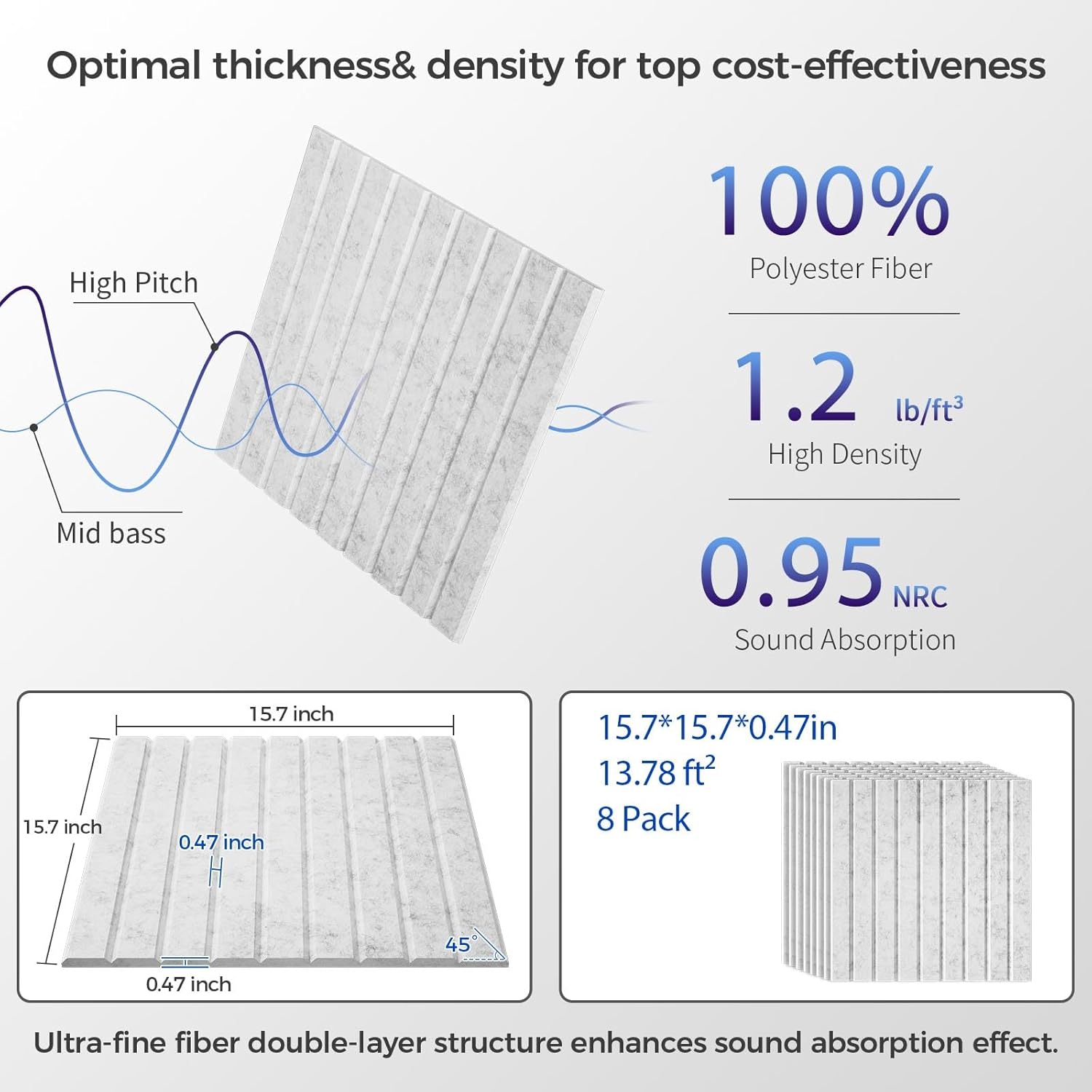 8 Pack Large Soundproof Wall Panels, 15.7 x 15.7 x 0.47 in Sound Proof Foam Panels for Walls, 1.2lb/ft³ High Density, Thicker 0.47in, Acoustic Panels, Sound Dampening Panels Gray