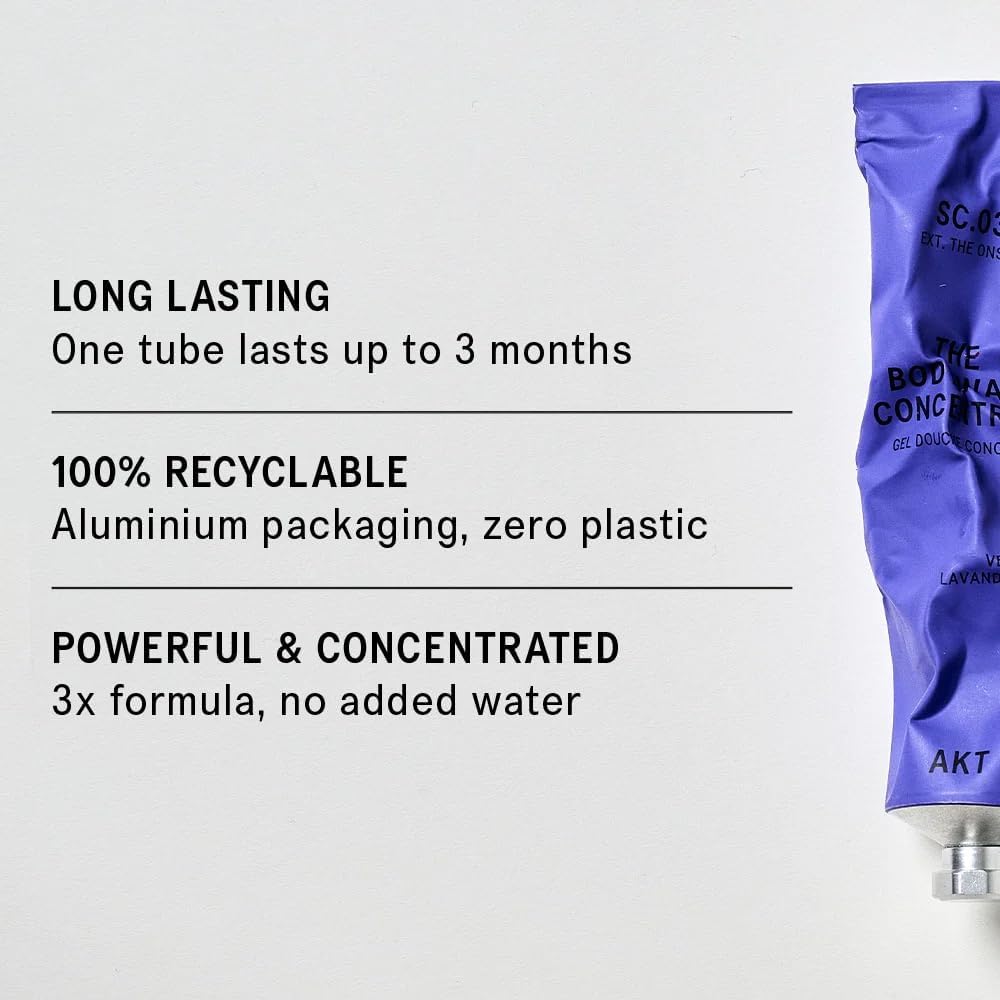 - Plastic-Free, Vegan Body Wash in Aluminium Tube: Made in the UK, this concentrated wash is housed in a 100% recyclable aluminium tube. Itβs certified vegan and cruelty-free β a conscious, sustainable choice that fits effortlessly into your daily performance ritual.