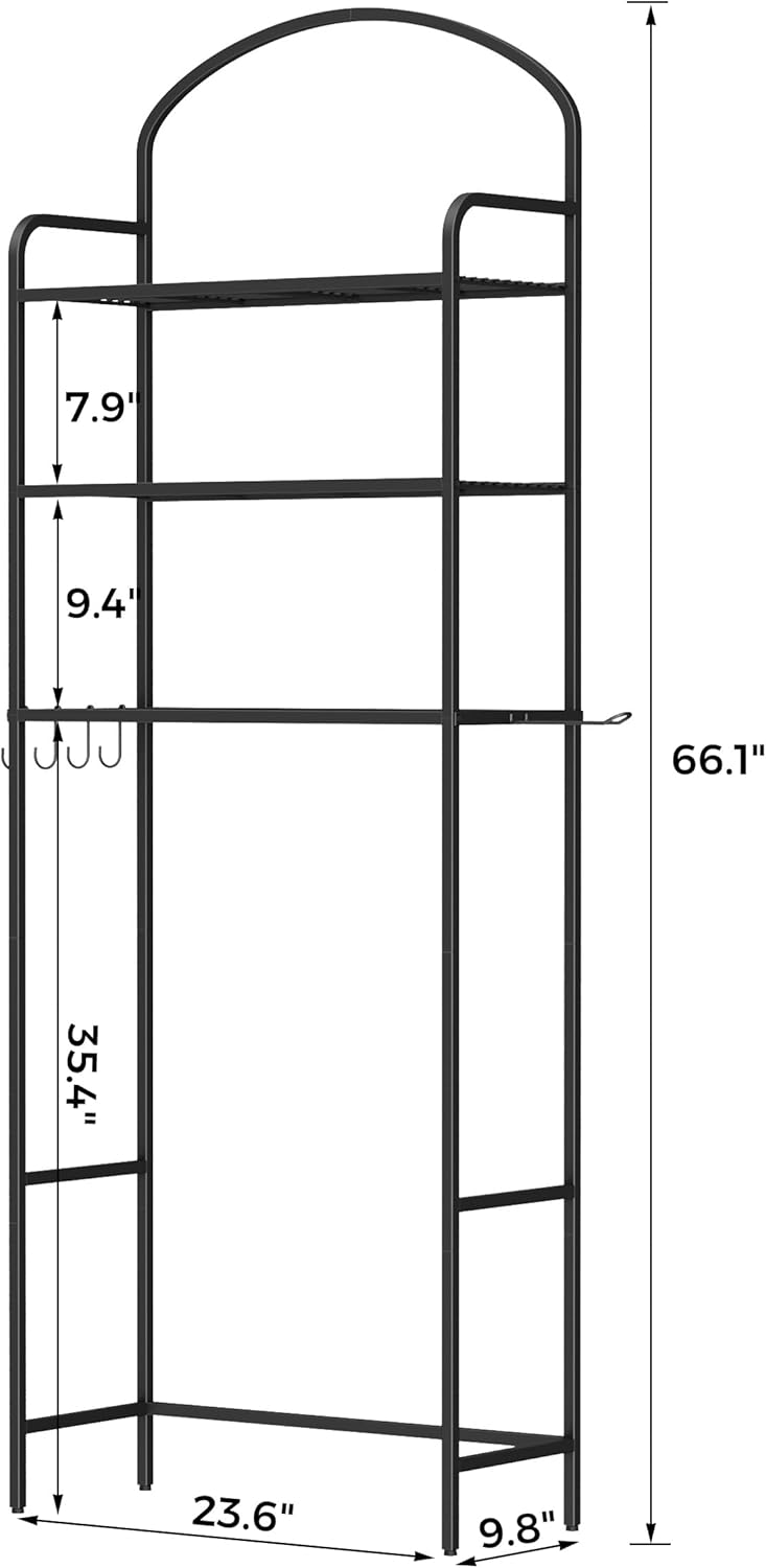 3-Tier Over The Toilet Storage, Bathroom Organizer, Space-Saving, Above Toilet Storage Rack with 4 Hooks and Paper Holder, Metal Shelf, Black