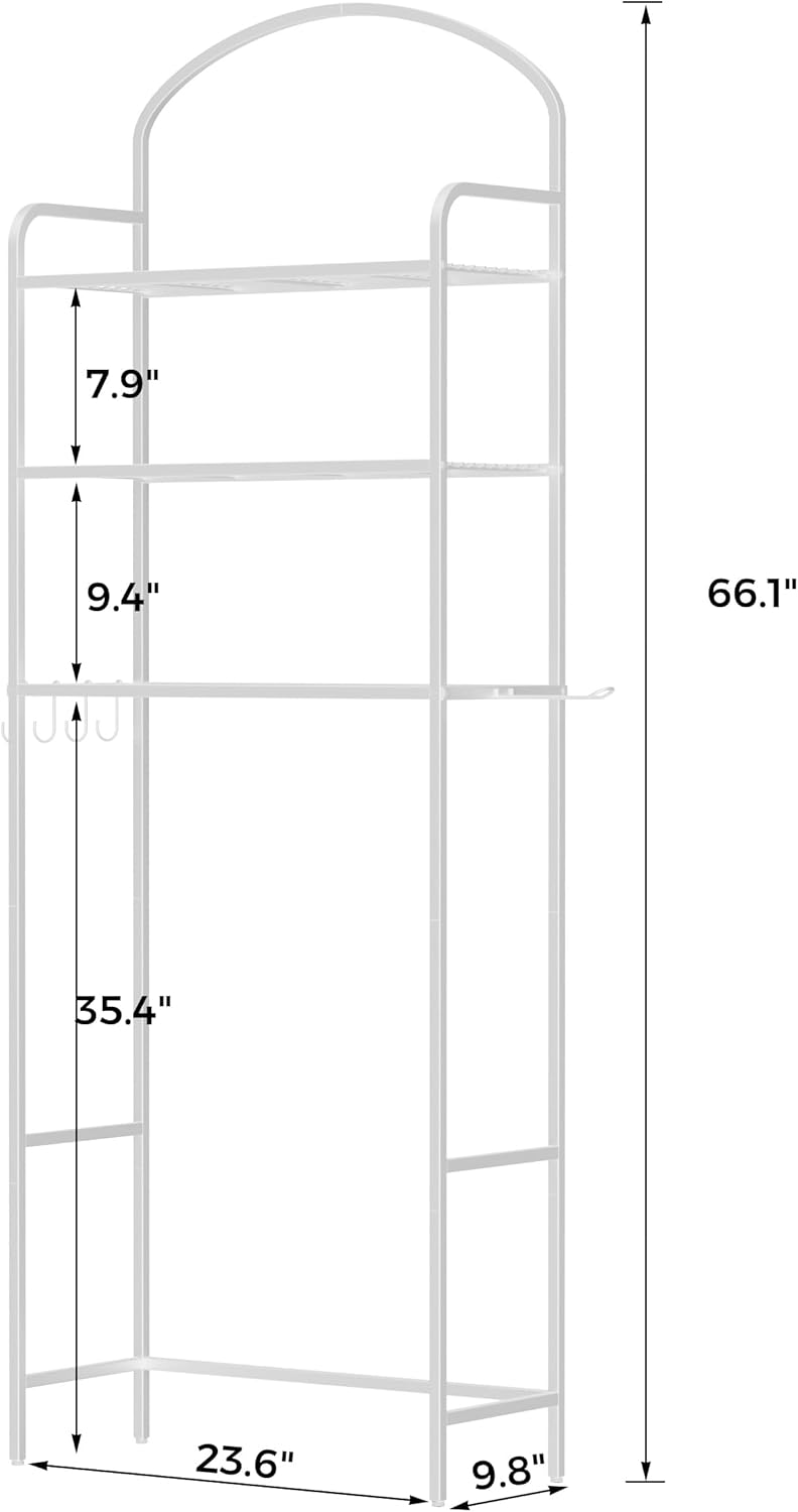 3-Tier Over The Toilet Storage, Bathroom Organizer, Space-Saving, Above Toilet Storage Rack with 4 Hooks and Paper Holder, Metal Shelf, White