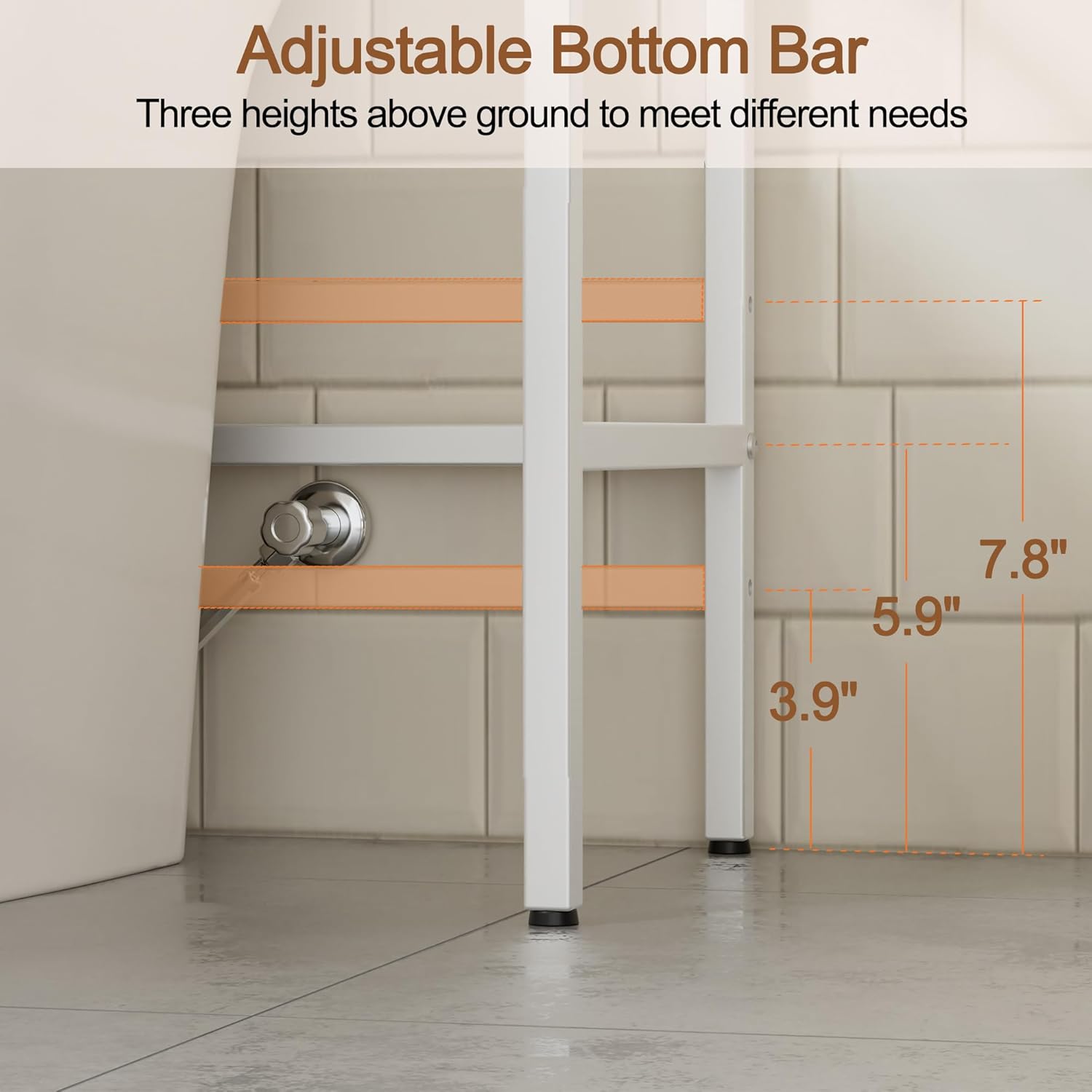 - Adjustable Bottom Bar: Customize your storage with three height options (7.8", 5.9", or 3.9" above ground) to fit different toilet shapes and sizes.