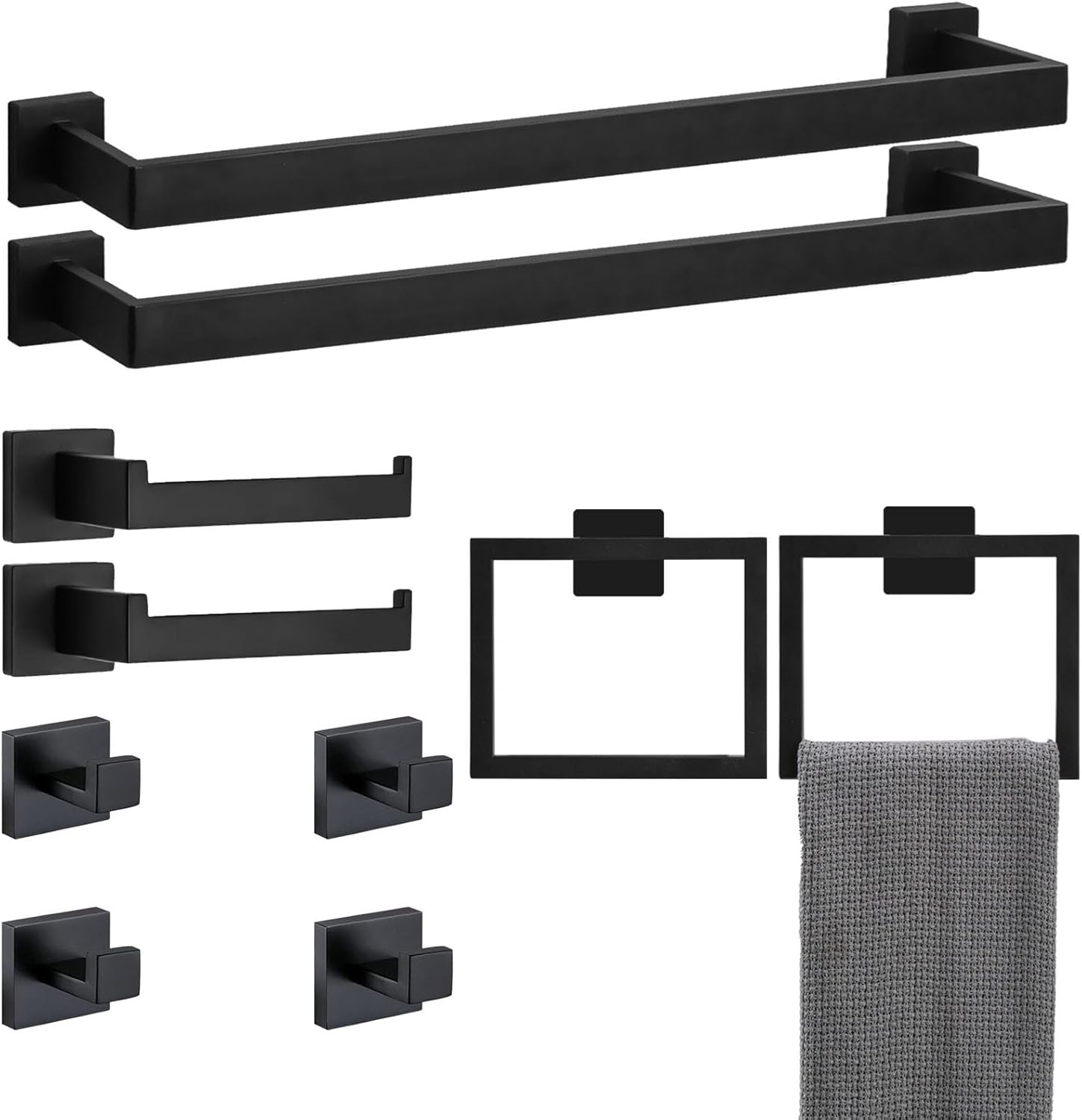- Safe-Design:the bathroom hardware accessory sets are designed with clean lines and sturdy construction. Unique squared shape and concealed mounting hole add a touch of modern design to your bathroom, chamfering edges protect your body from scratching.