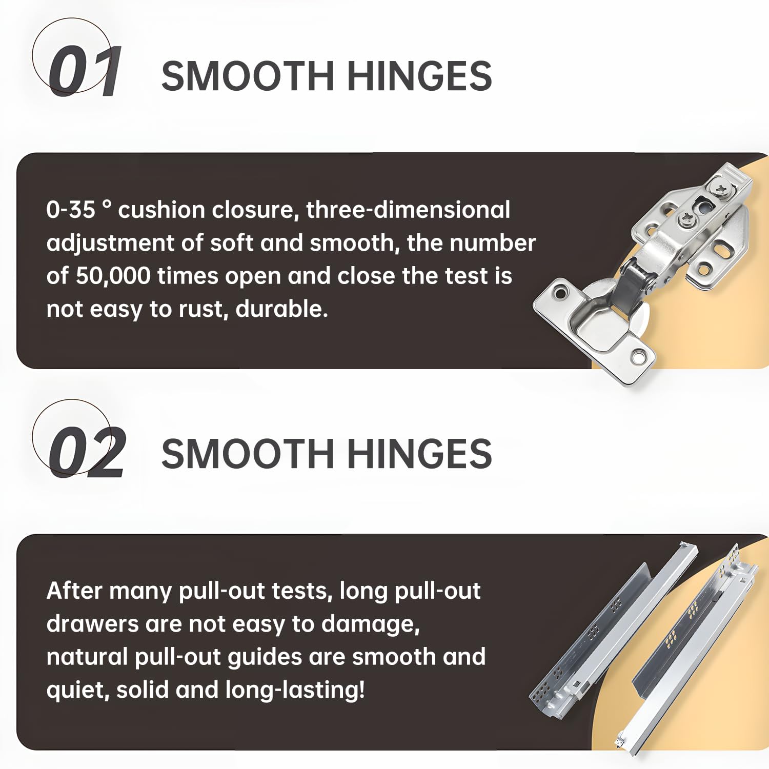 - SILENT AND SLOW CLOSING SYSTEM: Bathroom lockers and sink cabinets use durable stainless steel hinges that are robust and stable, firmly fixed to the cabinet door. The buffer closing system ensures that the cabinet door closes slowly and smoothly to avoid noise or damage caused by violent collisions.