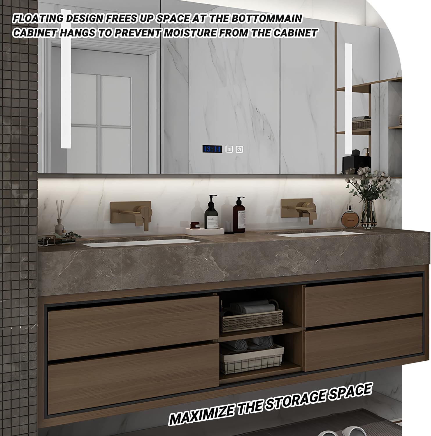 80IN Double Sink Bathroom Vanity, Floating Modern Bathroom Vanity Include Smart Defog Mirror Cabinet with LED Light, Solid Wood Vanities with Integrated Sink and Drawers Storage